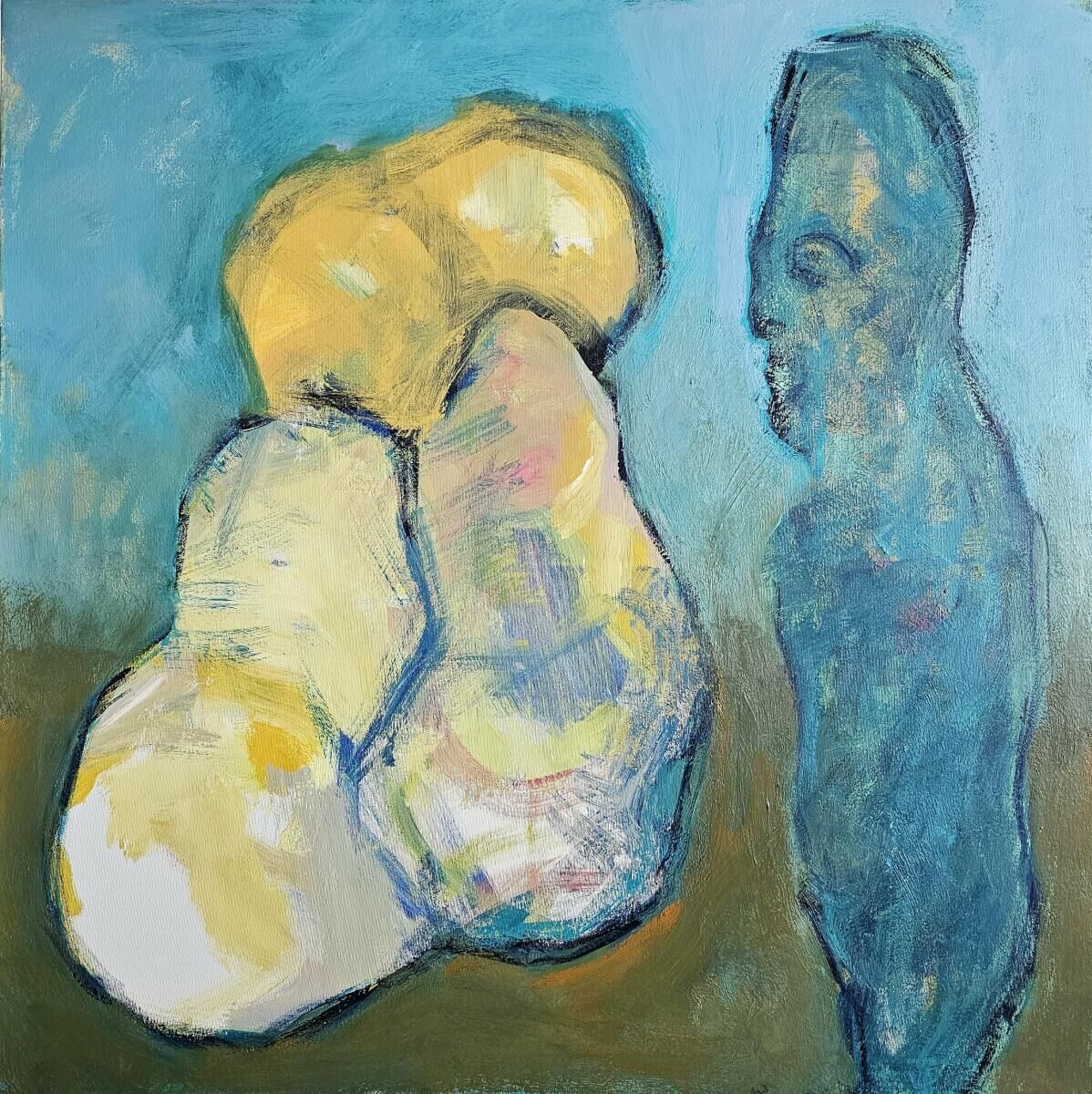 Ruckerbauer zeigt einen Teil seiner neuen Serie von Acrylbildern aus dem Jahr 2025 auf Leinwand. In diesen Bildern werden Schicht um Schicht, ausgehend von abstrakt expressiven Pinselstrichen, archaische Formen, Archetypen des Unterbewussten erforscht und freigelegt.