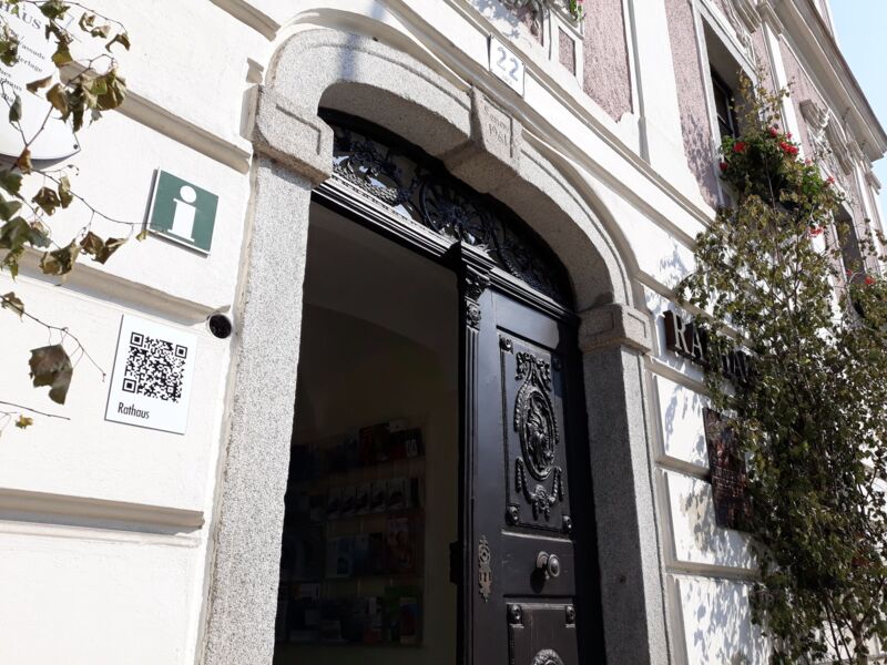 Historisch interessante Gebäude bekamen einen QR-Code verpasst, über den man Wissenswertes über die Häuser erfahren kann. Foto: Gahleitner