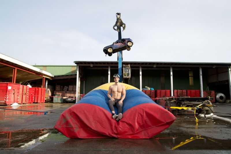 Mehr als 420.000 Mal wurde das Video mit dem Influencer Stefan Petrov unter dem Titel „Weltrekord – Car Blobbing“ bereits angeklickt. Realisiert wurde das Ganze mit Hilfe des Unternehmens „Blob Europe“, das die Spaß-Luftkissen herstellt. Normalerweise werden diese für Katapult-Sprünge ins Wasser verwendet. Diesmal wurde das Ganze allerdings auf dem Schrottplatz der Firma Grünzweil in St. Johann realisiert, da das Gelände optimale logistische Voraussetzungen für die Aktion bot, nämlich einen vorhandenen Kran, genügend Platz und Schrott-Autos.