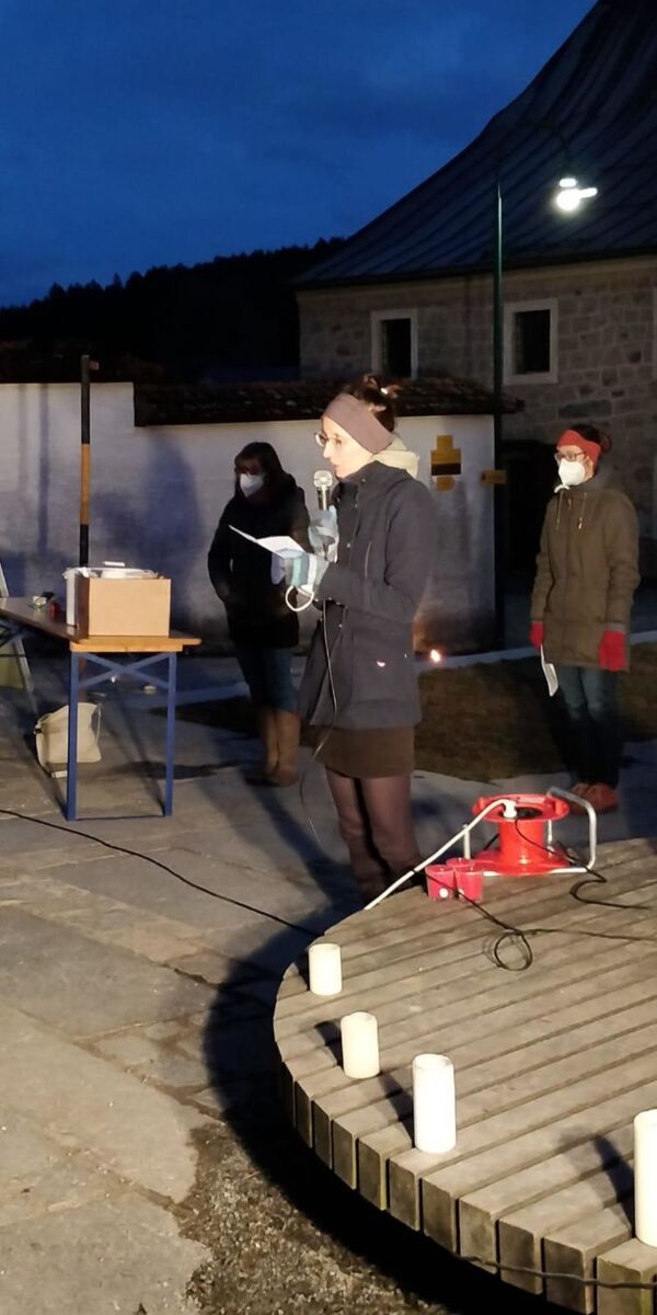 Am Freitag wurde beim Lagerfeuer am Kirchenplatz Nächstenliebe thematisiert. „Wenn wird vom Begriff Nächstenliebe sprechen, was verstehen wir eigentlich darunter. Was meinte Jesus mit seiner Forderung „Liebe deinen Nächsten wie dich selbst?“ und was bedeutet diese Forderung konkret mit Blick an die Außengrenzen der Europäischen Union?“, fragte Christina Berger, Beauftragte der Jugendpastoral zum Auftakt. Geführt von Texten der Hl. Schrift und mit Gedanken, Liedern und verschiedenen Impulsen, wie ein Smartphone-Lichtermeer oder ein erleuchteter Weg zum Nachgehen, machten sich die Teilnehmenden gemeinsam auf den Weg der Nächstenliebe. Dank der helfenden Hände von vier Haslacher Firmlingen und ihrem unermüdlichen Einsatz, die Kerzen und Fackeln immer wieder neu zu entzünden, wurde es trotz Wind am Haslacher Pfarrplatz immer heller.
