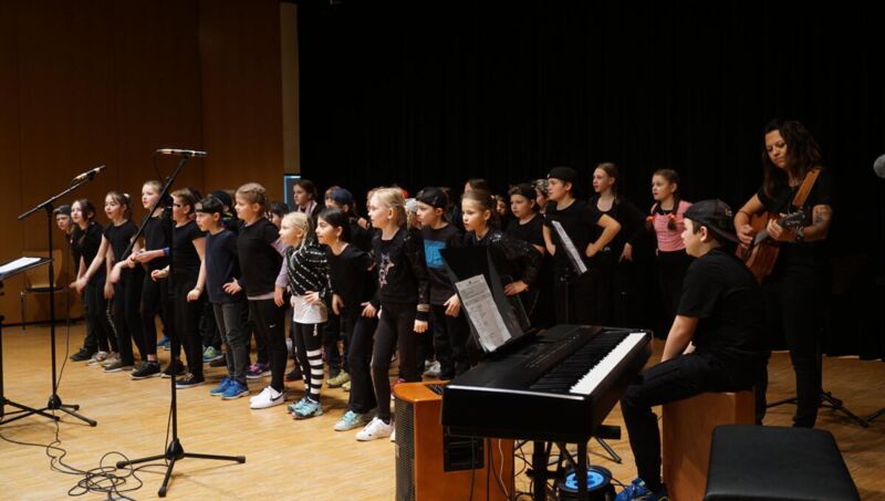 Sieben Volksschul-Chöre, fünf Mittelschul-Chöre und ein gemischter Chor mit insgesamt 430 jungen Sängerinnen und Sängern traten auf die Bühne in der Alfons Dorfner Halle und zeigten, was sie in den letzten Wochen einstudiert hatten. Vom Volkslied und Jodler bis zum Rap; vom Kinderlied bis zum Orchesterkanon; vom Musicalsong bis zum Pink-Hit Ein buntes musikalisches Potpourri war da zu hören, wobei bei allen Auftritten die Freude am Singen spürbar war. Schließlich macht „Singen Spaß und tut gut“, wie die teilnehmenden Talente eingangs gemeinsam gesungen haben.