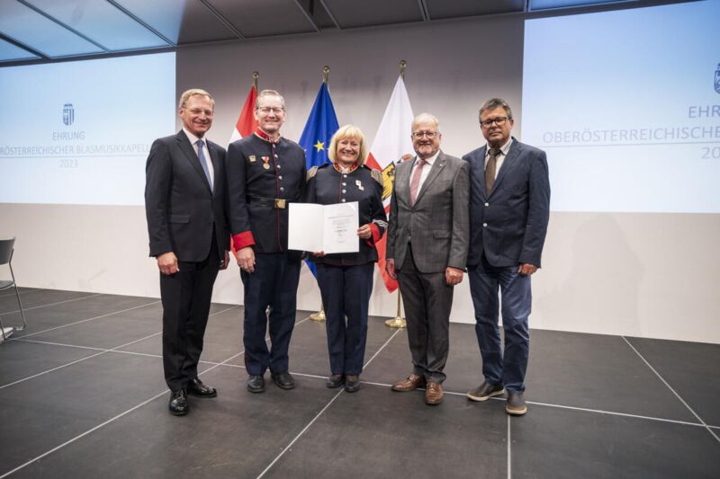 Bereits die achte Ehrung gab es für die Bürgerkorpskapelle Hofkirchen; in der Stufe 3 wurde der Musikverein St. Oswald ausgezeichnet. Stelzer lobte die Blasmusikkapellen als „prägende Teile eines einzigartigen Klangkörpers, der viel zur kulturellen Identität Oberösterreich beiträgt. Unsere Kapellen sind nicht nur Teil der lebendigen Volkskultur in Oberösterreich, sie bereichern auf vielfältige Weise auch das Gemeinschaftsleben in den Gemeinden und Regionen.“