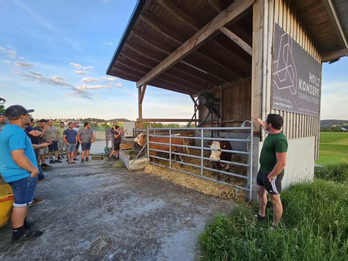 Hausherr Mathias Hintringer, der einen Milchviehbetrieb mit eigener Nachzucht führt, zeigte den 30 Jungbauern die Gülleseparation, die bodennahe Gülleausbringung sowie seine Heubelüftung.
