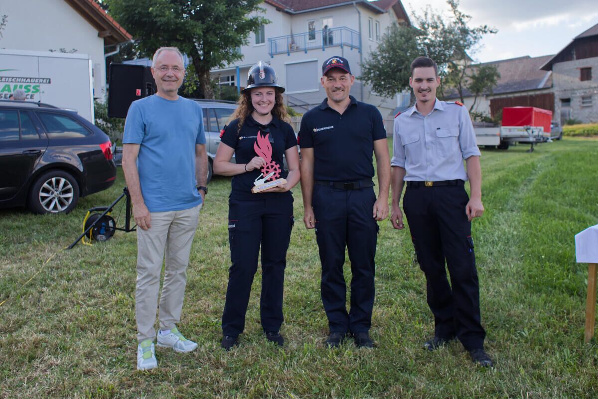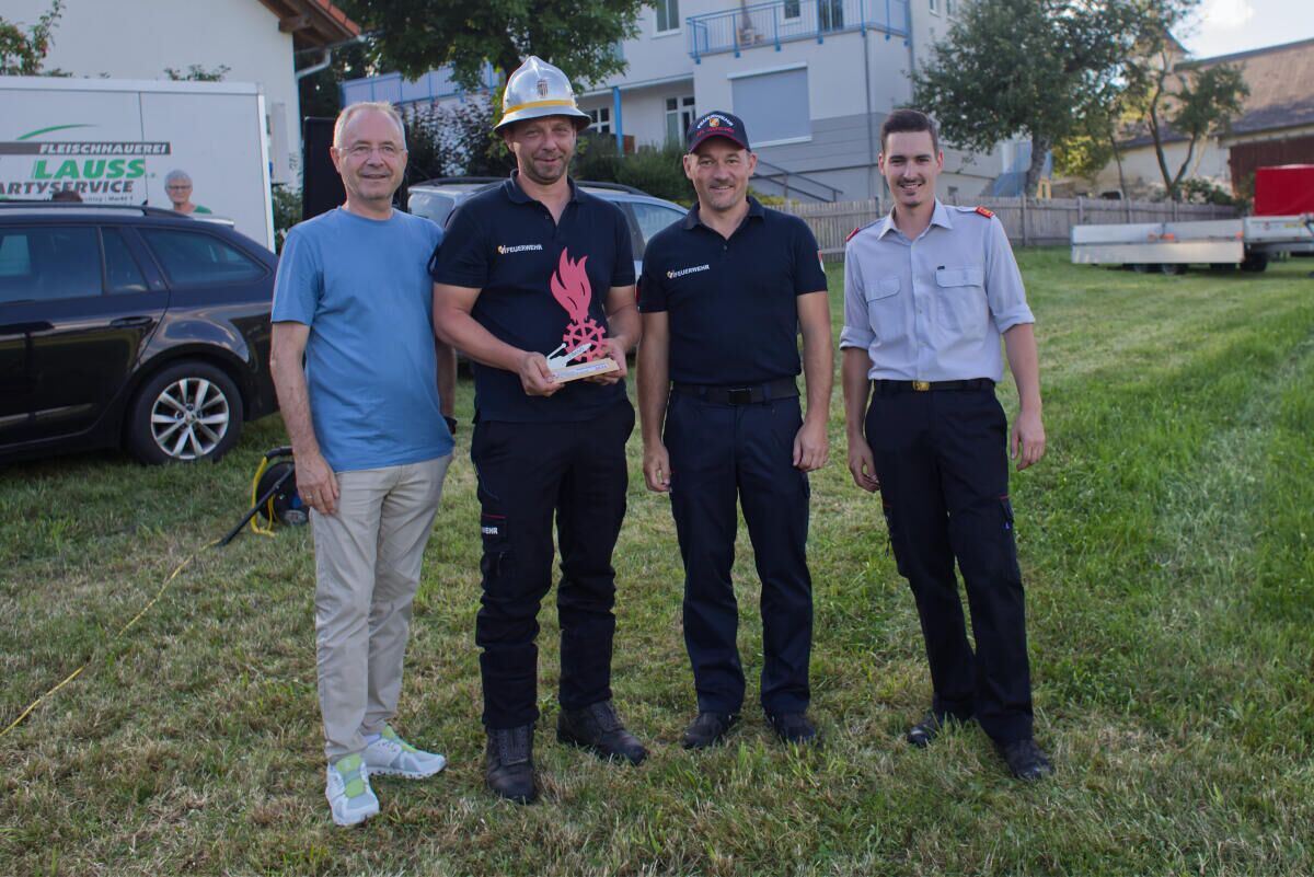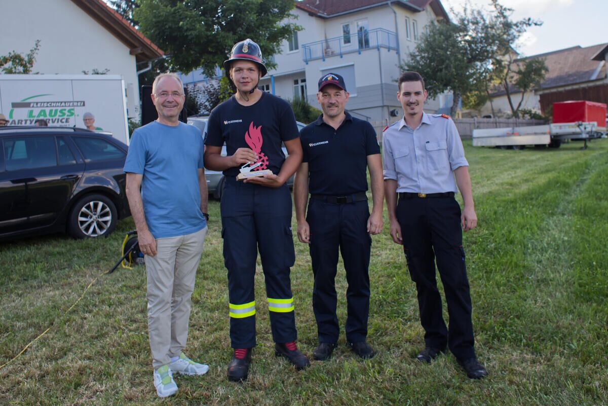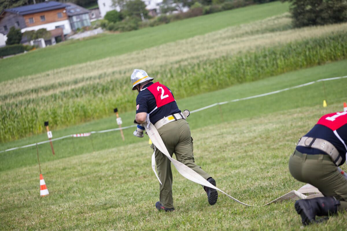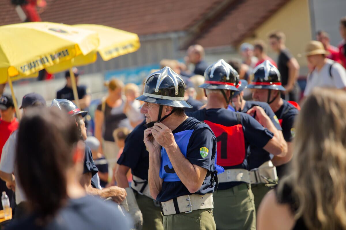 Bei einem Nassbewerb wird der Löschangriff durch die teilnehmen Feuerwehrkameraden nicht trocken sondern mit Wasser durchgeführt. Somit ist auch vom Maschinisten beim Ansaugen des Wassers vollster Einsatz gefragt. Dieser hat daher die Aufgabe, die Pumpe nach dem Auslegen der Saugleitung zu starten und das Wasser anschließend über die Schlauchleitung nach vorne zu befördern. Dass dabei auch die Bewerbsteilnehmer nass werden können, zeigte sich bei diesem Bewerb - und sorgte an dem heißen Tag für eine guttuende Abkühlung.