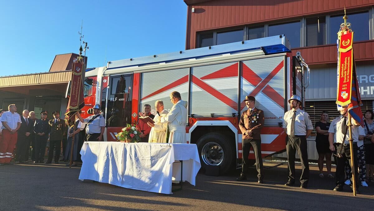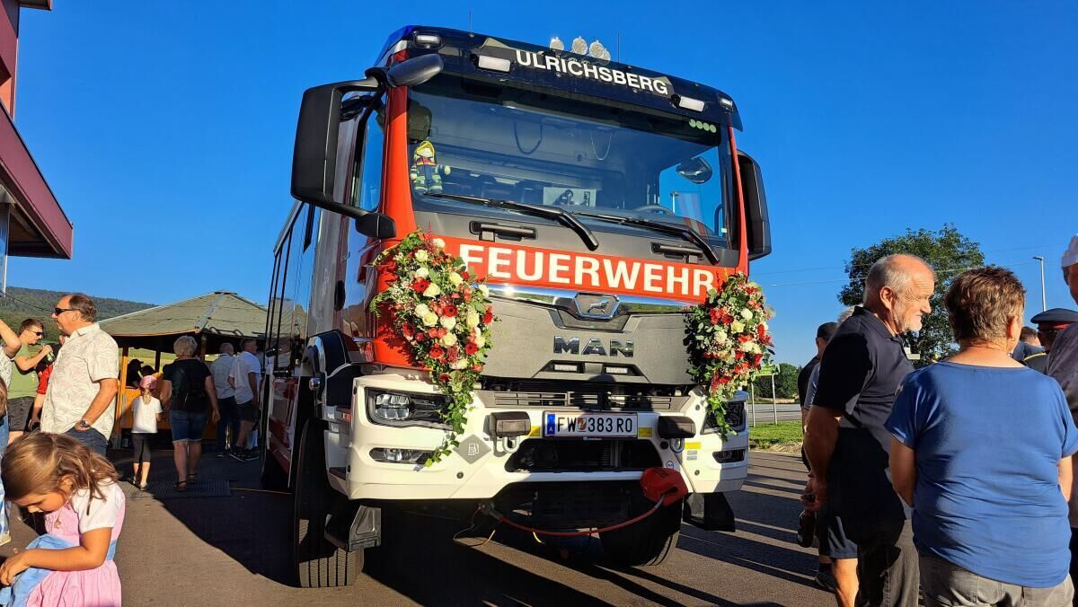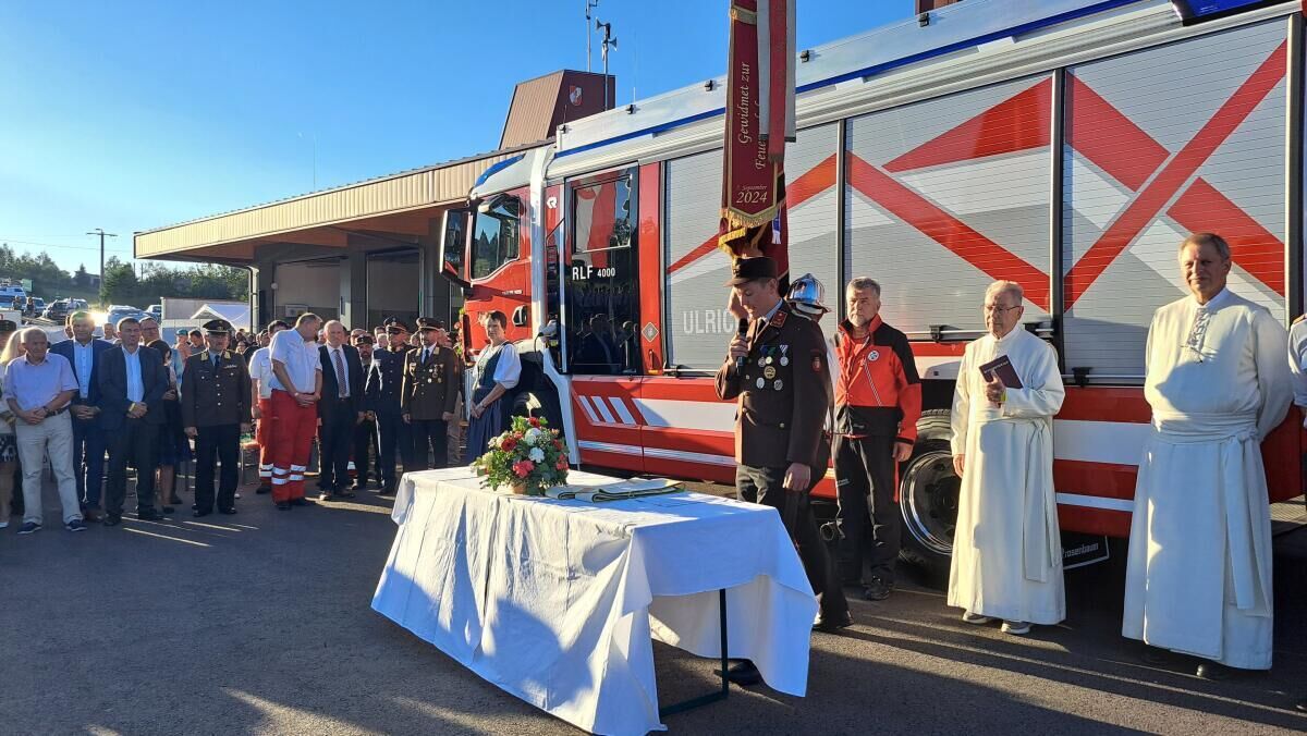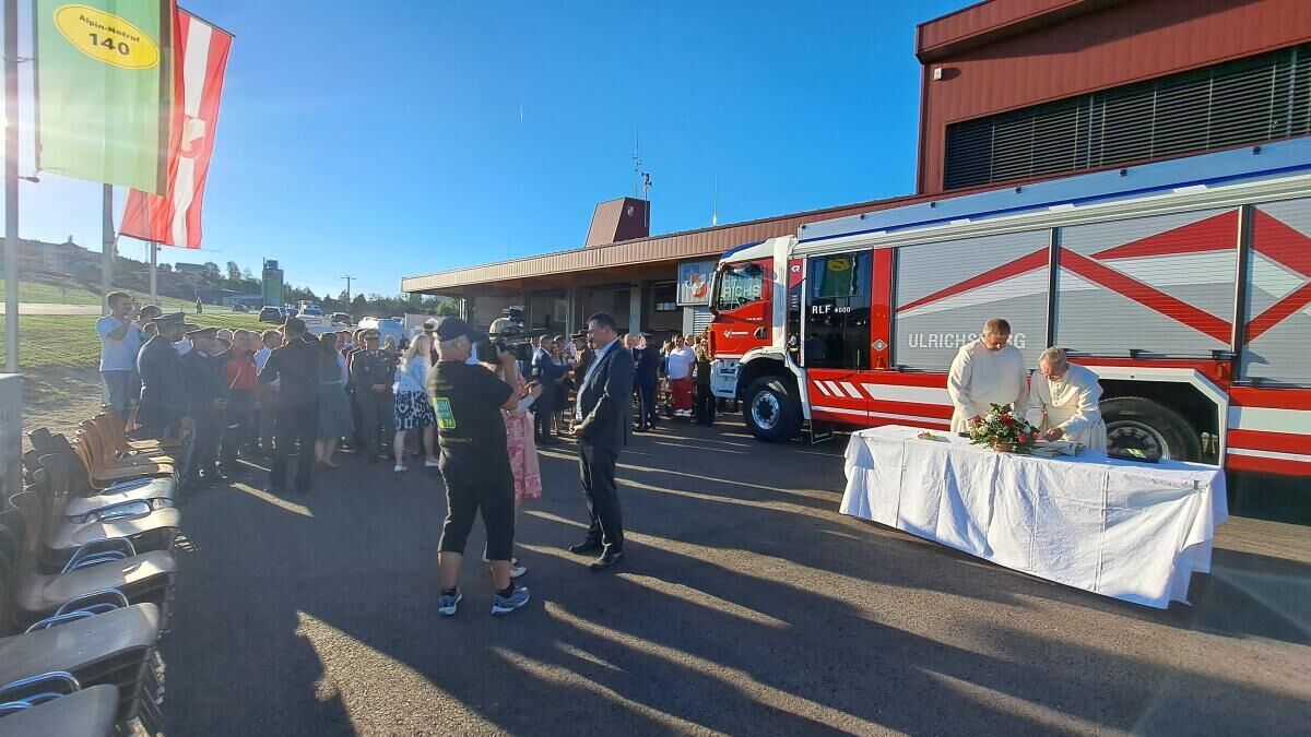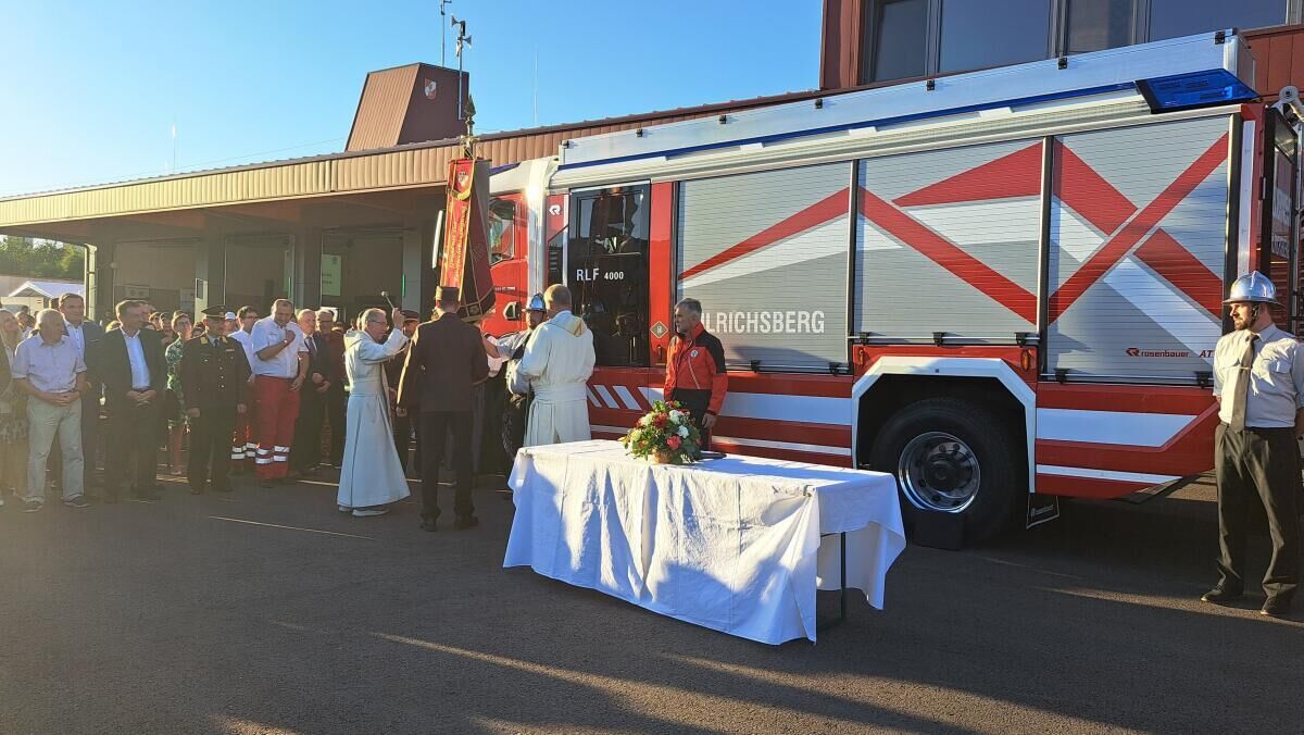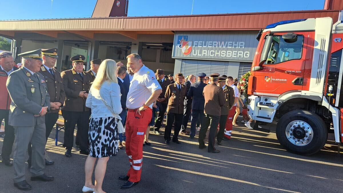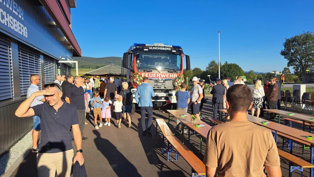 An die 20 Feuerwehren und Vertreter der Bergrettungen aus ganz Oberösterreich feierten mit ihren Kameraden die Einweihung des neuen Einsatzzentrums und des neuen Rüst-Löschfahrzeugs RLFA 4000 in Ulrichsberg.