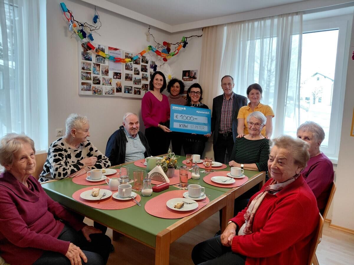 Mit einem Scheck über 1.000 Euro stellte sich das Team des KBW St. Peter gemeinsam mit Gerlinde Arnreiter später bei den Senioren in der Tagesbetreuung in St. Johann ein.