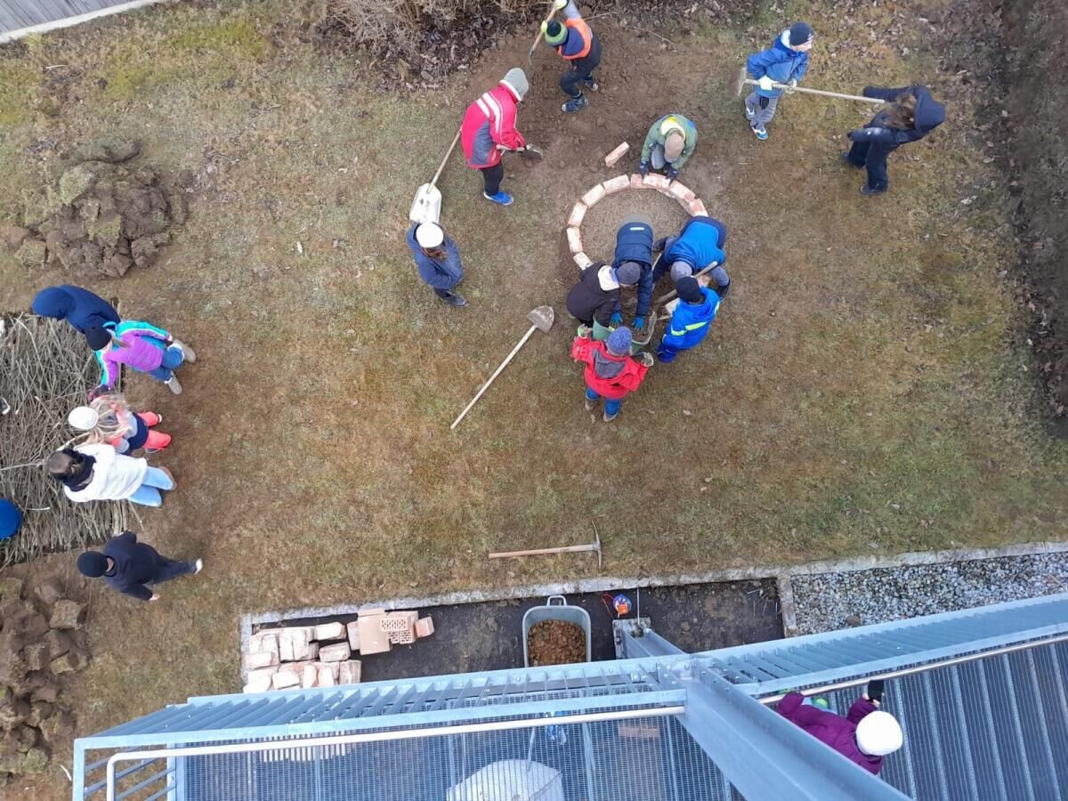 Davon inspiriert, diskutierten die Schüler über den Klimawandel, sammelten weitere Ideen für ihr Klimaprojekt und beschlossen, gemeinsam ein Hügelbeet und eine Kräuterschnecke anzulegen. Am letzten Tag vor den Semesterferien schritten sie zur Tat: Unterstützt von Schulwart und Gemeindebediensteten bauten die Jugendlichen aus natürlichen Materialien wie Ästen, Erde, Pferdemist, Holzspänen und Humus zwei Beete. Hier sollen später Kräuter und Gemüse wachsen.