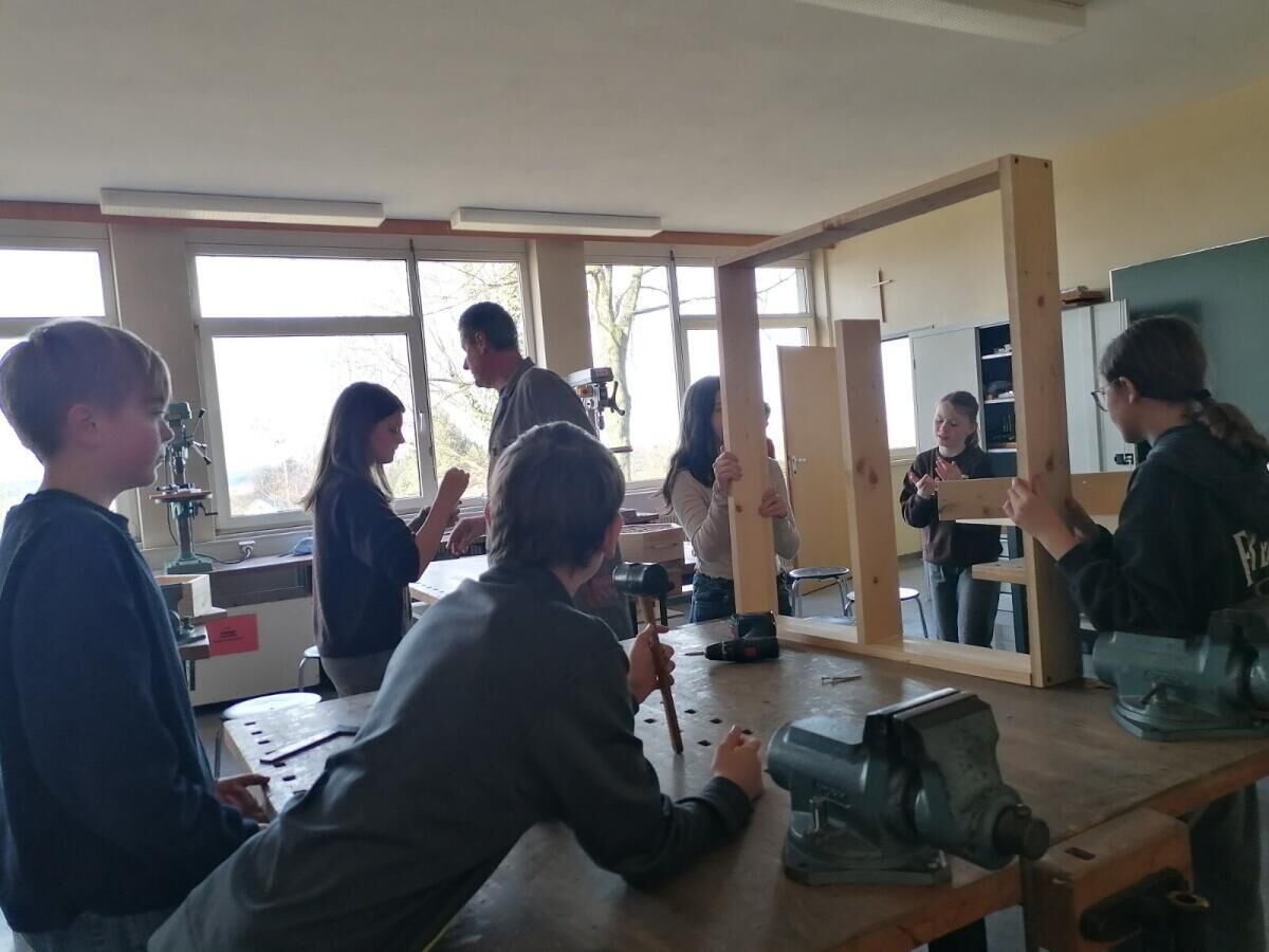 Während eine Gruppe am Außenbereich arbeitete, bauten andere Schüler im Werkraum Insektenhotels, verfassten Berichte über den Projekttag oder übernahmen die Finanzdokumentation. Geplant ist außerdem der Bau einer Wurmkiste, in der Kompostwürmer Küchenabfälle in nährstoffreichen Dünger verwandeln. Und die Schüler werden unter Anleitung zweier Kräuterpädagoginnen in der Schulküche verschiedene Produkte aus Kräutern herstellen.