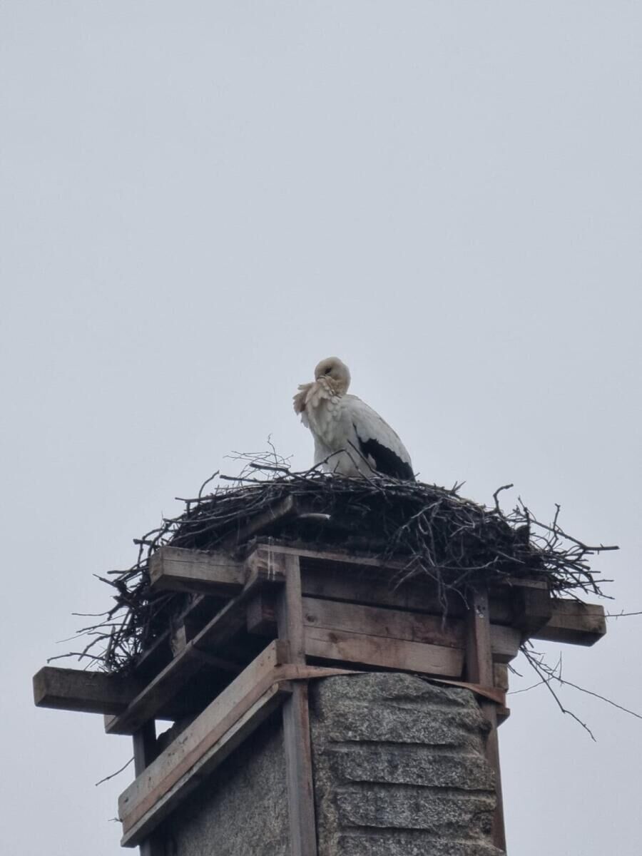 Nun macht sich das Storchenmännchen an die Ausbesserung der Winterschäden am Horst. „Dann kommt hoffentlich das Weibchen nach und dem Brutgeschäft steht nichts mehr im Wege.“