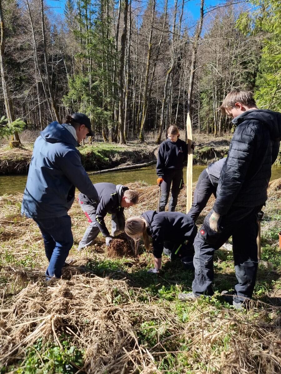 AIGEN-SCHLÄGL/ULRICHSBERG. Im Einsatz für die Natur standen Polyschüler aus Aigen-Schlägl. Sie haben am Ufer der Großen Mühl heimische Bäume und Sträucher gepflanzt und unterstützten damit das Renaturierungsprojekt der Böhmerwaldschule und des Landes OÖ.