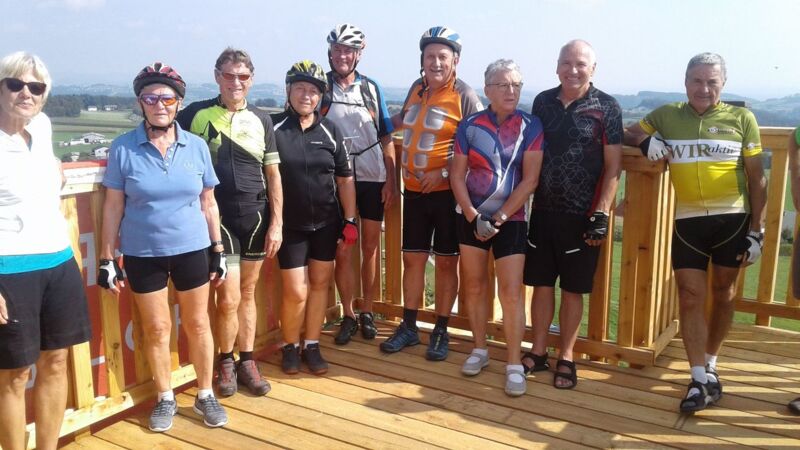 Bei guten Temperaturen und Schönwetter ging die Fahrt nach Kirchberg.. Wir hatten das Glück, den neu errichteten Burgstall-Aussichtsturm als eine der Ersten erklimmen und eine Ausschau in die Umgebung nehmen durften. Es ging dann weiter nach Altenfelden, Neufelden und auf der alten Trasse der B 127 zurück nach Sankt Martin. Ein herrlicher Rundblick über unser schönes Oberösterreich war der Lohn der Mühen.