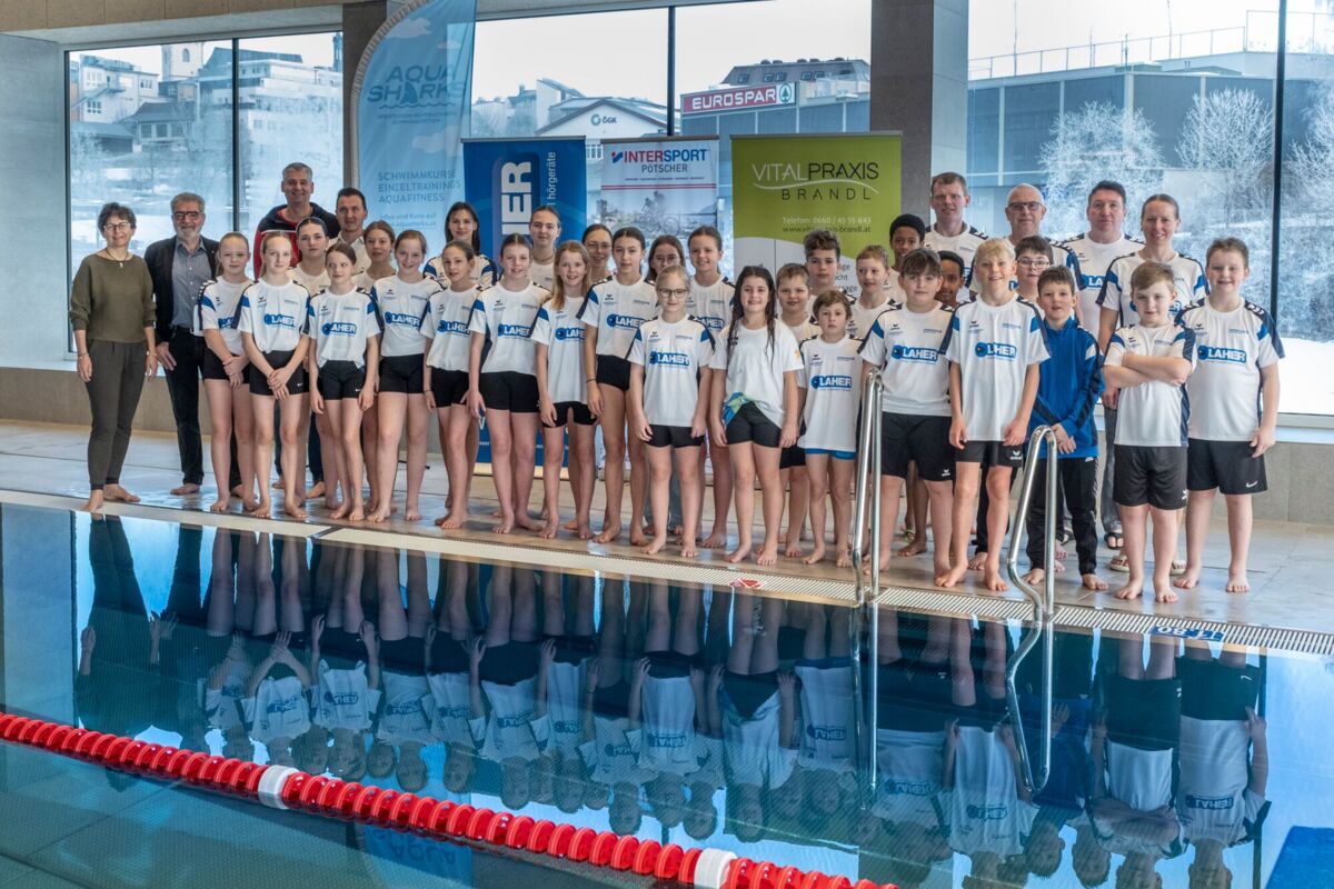 Ende Jänner erfolgte die Übergabe neuer T-Shirts durch die Sponsoren Intersport Pötscher, Hören und Sehen Laher, SMW Sparkasse Mühlviertel West und Vitalpraxis Brandl an das Schwimmteam und an das „Young Orcas“ Team der AquaSharks.