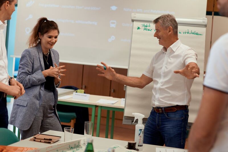 An der anschließenden Diskussion an den World-Café-Thementischen beteiligten sich neben Agfalterer WK-Bezirksstellenleiter Klaus Grad, HTL-Direktor Walter Jungwirth und Klaus Madlmair, Projektmanager bei Business Upper Austria. Sie waren sich darüber einig, wie es gelingen kann, die besten Fachkräfte in der Region zu halten: Neben den „harten Fakten“ wie Bildungs- und Arbeitsplatzangebot treffen jüngere Generationen Entscheidungen über ihren Wohnort zunehmend unter Berücksichtigung von „soft facts“, z. B. der Möglichkeit, Mitglied in sozialen Gruppen zu sein oder dem Ansehen ihrer Arbeitgeber. Ambiguität wird für Junge immer mehr zur Lebensrealität: Nicht Stadt oder Land, sondern Stadt und Land lautet die Devise.