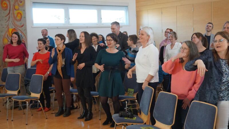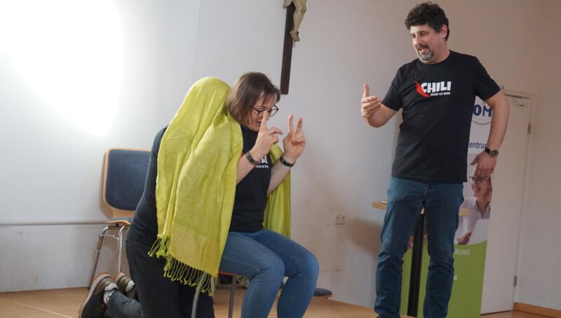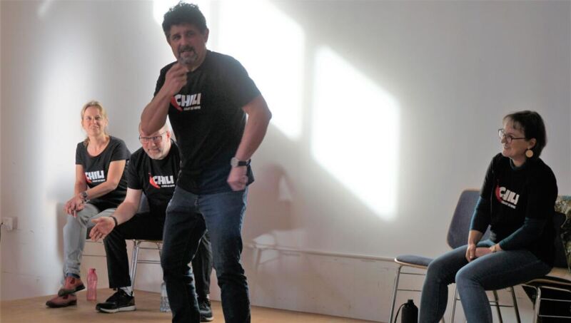 Für die Festgäste gab es eine Präsentation von Bild- und Wortspenden, die deutlich machten, dass im FTZ Teamgeist, Gemeinschaft, Vielfalt, Kompetenz, Hilfsbereitschaft gelebt werden. Und dass auch der Humor nicht zu kurz kommt, bewies der Auftritt der Improvisations-Theatergruppe „Chili“, die sich von zugerufenen Sätzen und Schlagwörtern zu kurzen Szenen inspirieren ließ.
