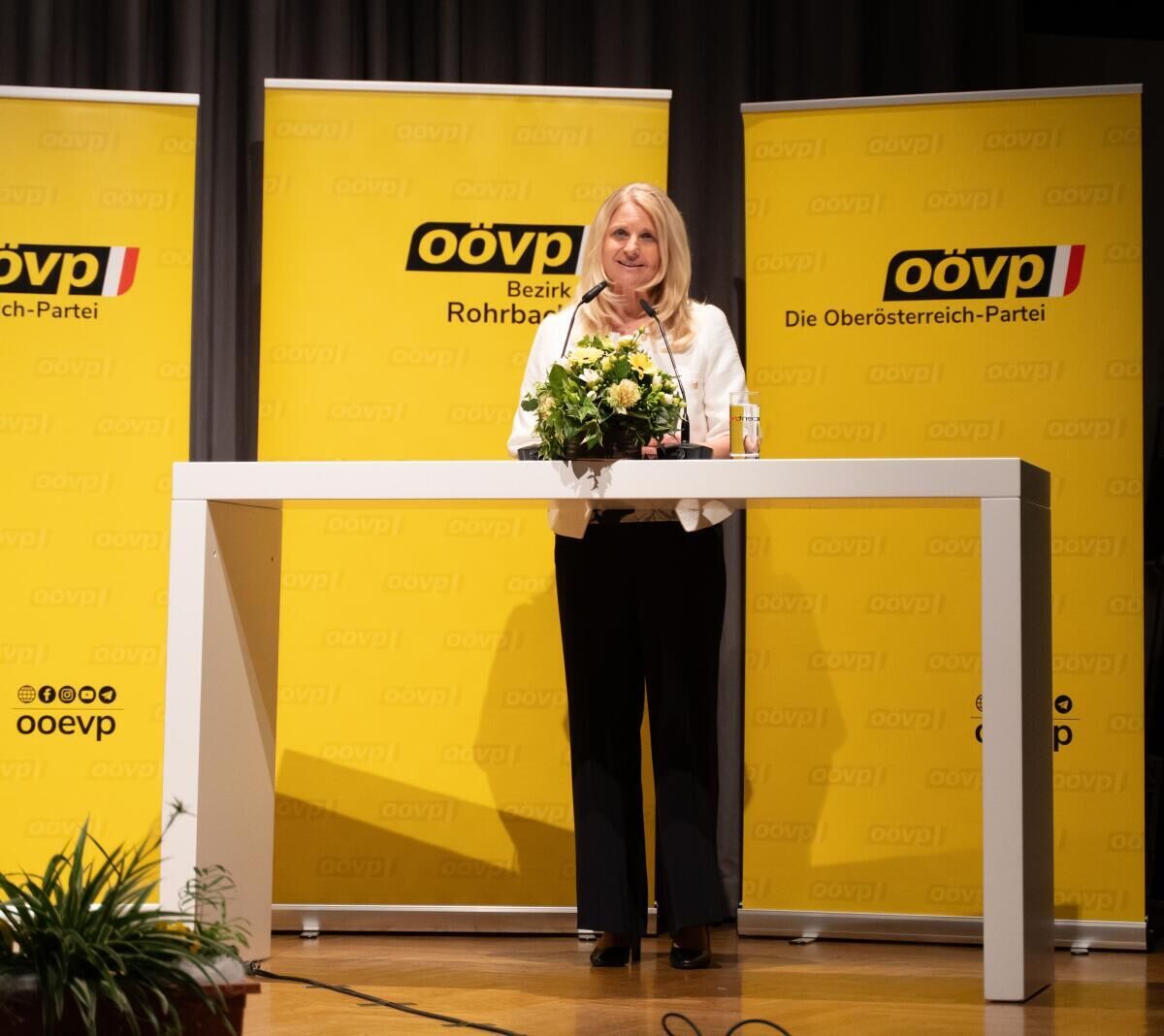Der starke Zusammenhalt im Bezirk Rohrbach ist für Scheiblberger Auftrag und Motivation zugleich, die Zukunft der Region mitzugestalten. Und dieser Zusammenhalt wurde beim Bezirksparteitag im Centro Rohrbach deutlich: Mehr als 300 Vertreter aus den ÖVP-Ortsgruppen des Bezirkes waren neben vielen Ehrengästen der Einladung gefolgt. „Als ÖVP sind wir im Bezirk Rohrbach die gestaltende Kraft. Gemeinsam mit unseren 30 Bürgermeistern und drei Bürgermeisterinnen und den mehr als 400 Gemeinderätinnen und Gemeinderäten setzen wir uns dafür ein, unsere Gemeinden, unseren Bezirk und unser Land positiv zu gestalten und weiterzuentwickeln“, bekräftigte die wiedergewählte Bezirksparteiobfrau in ihrer Rede.