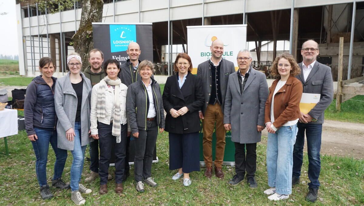 Schon zum Start des auf drei Jahre angelegte Projektes im Frühjahr 2024 hat das Grünlandmonitoring allen vier Pilotbetrieben eine gute Artenvielfalt bestätigt. Am Loisnhof wurden seither Altgrasstreifen angelegt; mit spät gemähten kleinen Inseln wurden Habitate für Insekten geschaffen; Leguminosen auf intensiv bewirtschafteten Flächen eingesät, um eiweißreicheres Futter zu erhalten; und die Düngung optimiert. All das seien Optimierungsmaßnahmen, die sich in der Praxis gut umsetzen lassen, berichtet Heumilchbauer und Projektpartner Christian Stöbich. Er ist dankbar, dass das Grünland nicht vergessen wird, „das ist die Grundlage für unsere Arbeit und unseren Hof“, betont der Landwirt, der sich auf dem Loisnhof gemeinsam mit seiner Frau Sandra auf das traditionelle Käsehandwerk spezialisiert hat.