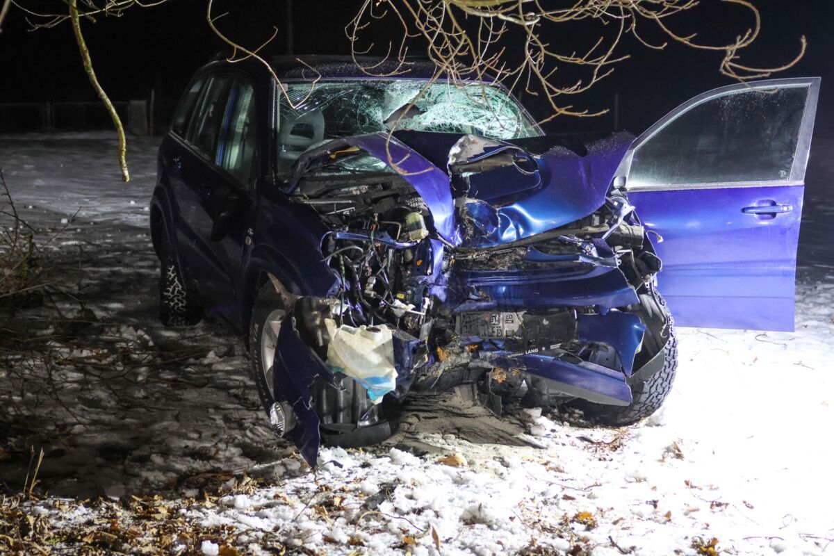 RIEDAU. Bei einem schweren Unfall auf der Pramtalstraße am Samstag kam ein Auto von der Straße ab und prallte gegen einen Baum. Eine Person erlitt dabei schwere Verletzungen.