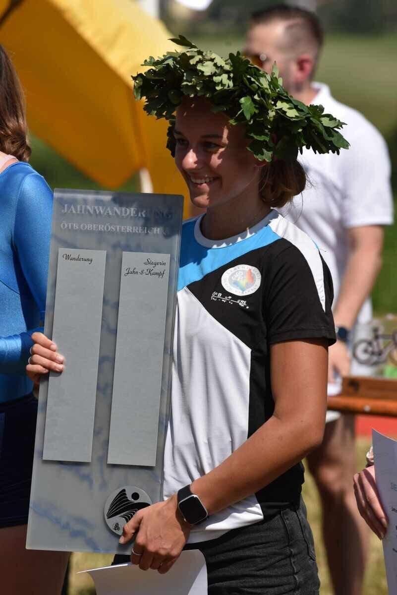 92 Jahnwanderer und sieben Jahnsternfahrer aus Taufkirchen haben – aufgeteilt in viele unterschiedliche Wander- und Fahrradgruppen – den Weg nach Aigen zurückgelegt und waren rechtzeitig bei der Hauptmeldung anwesend. Aufgrund dieser hohen Teilnehmerzahl konnte der Turnverein Taufkirchen trotz der wenigen Kilometer die Vereinswertung für sich entscheiden und die Jahnwanderfahne zum fünften Mal für ein Jahr mit nach Taufkirchen nehmen. Bei den Jahndrei-, -acht- und -zehnkämpfen sowie den Geländeläufen waren die Taufkirchner TurnerInnen – wie jedes Jahr – sehr stark vertreten und konnten auch großartige Ergebnisse erreichen. Besonders hervorzuheben ist Magdalena Sura, die das erste Mal an einer Jahnwanderung und somit auch an einem Jahn-Achtkampf teilnahm. Dieser Nachteil gegenüber den anderen Wettkämpferinnen schien ihr aber nichts auszumachen, denn sie konnte sich gegen alle anderen Mädchen und jungen Frauen im Alter von 15 bis 21 Jahren durchsetzen und den Jahnschild gewinnen. Damit ging dieses begehrte Siegerzeichen bei den Damen nun zum 14. von 21. Mal an eine Gewinnerin aus Taufkirchen. Ebenfalls besonders zu erwähnen ist Johann Weißhaidinger, der heuer bereits zum 40. Mal mit dem Turnverein Taufkirchen an einer Jahnwanderung dabei war.