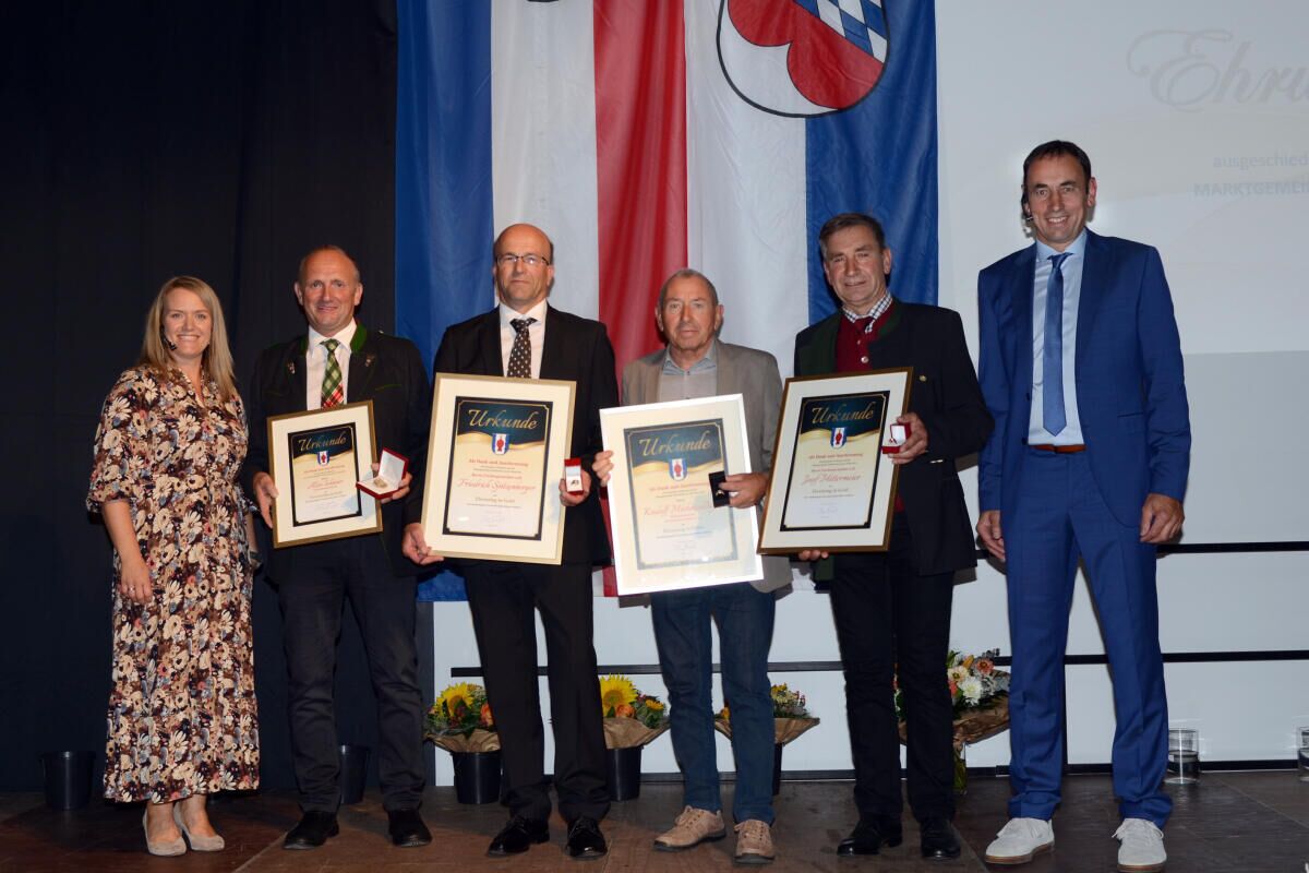 Den Höhepunkt der Ehrungsfeier stellte die Verleihung der Ehrenbürgerschaft der Marktgemeinde Taufkirchen an der Pram an Bürgermeister a.D. Josef Gruber dar. „In seiner fast 30-jährigen politischen Tätigkeit für Taufkirchen an der Pram stand klarerweise sein Wirken als Bürgermeister (2003 bis 2015) im Mittelpunkt der Würdigung seiner Verdienste. Die fast zwei Perioden seiner Bürgermeisterzeit waren vor allem von zwei Bauvorhaben geprägt“, informiert Bürgermeister Paul Freund. Weiters erhielten die beiden Vizebürgermeister a. D. Friedrich Spitzenberger und Josef Mittermeier den Ehrenring in Gold überreicht. Rudolf Michetschläger und Johann Redinger (langjährige Gemeindevorstände und Fraktionsobmänner) bekamen den Ehrenring in Silber verliehen. Gemeindevorstand a. D. Alois Schauer erhielt das Ehrenzeichen in Gold.