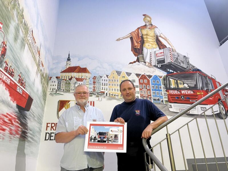 Organisiert wird die ganze Aktion vom Briefmarkensammlerverein Münzkirchen. „Das Sonderpostamt, wo es neben der Marke auch entsprechende Schmuckkuverts zu erwerben gibt, hat von 14 bis 18 Uhr in der Bezirkssporthalle Schärding geöffnet,“ so der Obmann des Briefmarkensammlervereins Münzkirchen Leopold Zehetner. Auf der Marke ist das neue Tanklöschfahrzeug zu sehen mit Feuerwehrmitgliedern in Uniformen der unterschiedlichsten Generation. „Als Hintergrund haben wir die Silberzeile gewählt und ich hoffe, dass die Marke ein beliebtes Sammlerstück wird,“ so Feuerwehrkommandant Markus Furtner. Wer schon vorab Marken für drei Euro und fertige Schmuckkuverts für 3,50 Euro reservieren möchte, kann dies unter bsv.muenzkirchen@aon.at machen.