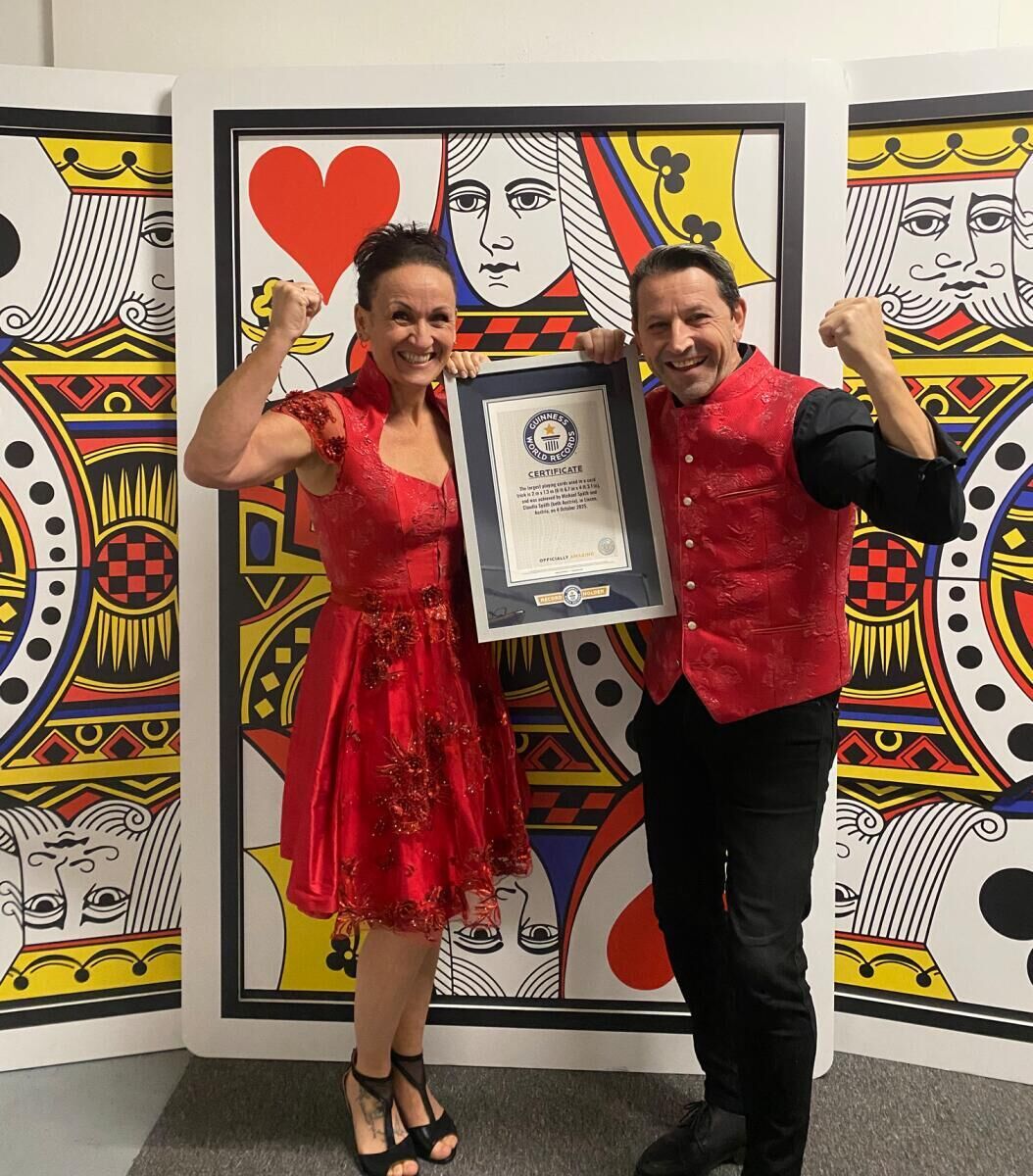 Seit Oktober sind die beiden offiziell Guinness World Record Holders für ihren Weltrekord mit den größten Spielkarten, die je für einen Kartentrick benutzt wurden. Sie sind damit gleichzeitig die ersten österreichischen Magier mit einem anerkannten Guinness-Titel. Ihr neue Show bietet überraschende Illusionen, Situationskomik und natürlich darf auch ihr Publikumsliebling, das Huhn Henrietta, nicht fehlen. Die Show beginnt am 1. Februar um 15 Uhr, Karten kosten 20 Euro für Erwachsene sowie 15 Euro für Kinder. Mehr Infos zum Künstlerpaar und den Karten gibt es unter www.claudiaandmichaellate.com