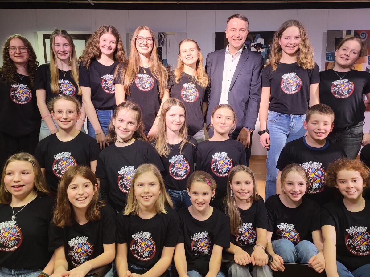Auch optisch sorgten die Chorklassen für einen neuen Akzent. Erstmals trugen die Schüler die neuen Chor-T-Shirts mit dem neuen Logo der Chorklassen. Diese konnten dank der großzügigen Unterstützung des Elternvereins angeschafft werden.