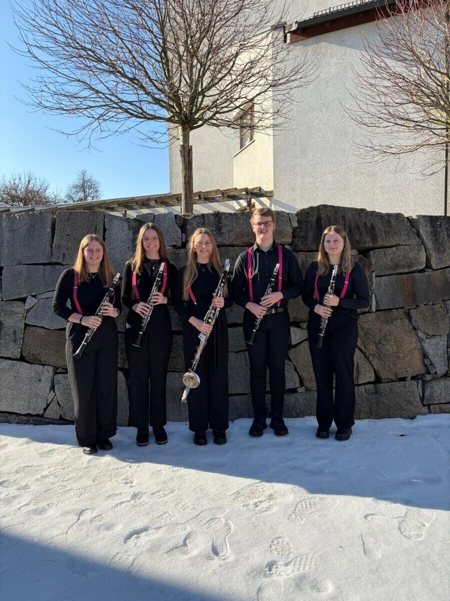 Das Klarinettenquintett „Pinktett“ sowie das Klarinettentrio „Klarinätzchen“ darf am Landeswettbewerb teilnehmen.