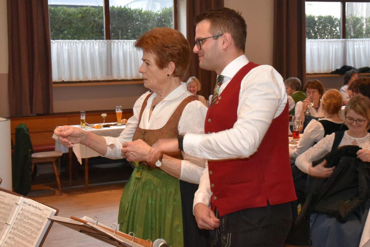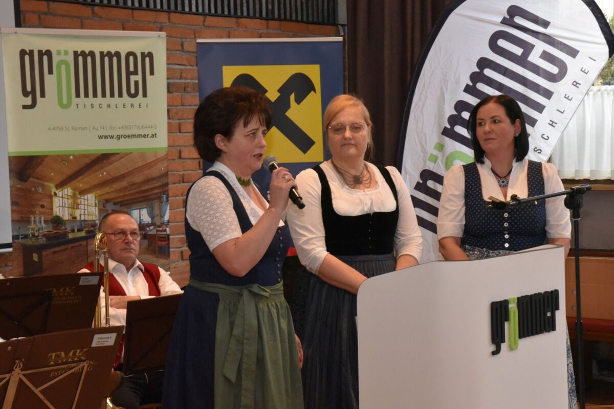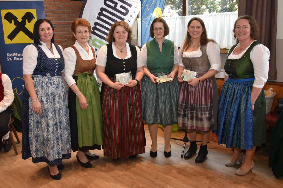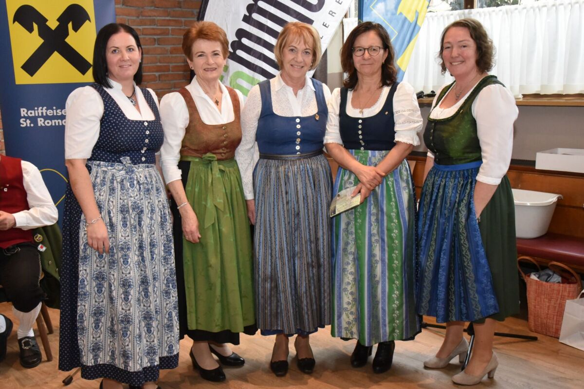 Im Rahmen der Ehrungen wurden Jubiläen gefeiert und neue Goldhaubenfrauen feierlich aufgenommen. Große Aufmerksamkeit erhielt die Präsentation „50 Jahre Goldhaubengruppe St. Roman“. Dabei wurden auch zwei neue Mitglieder vorgestellt, deren Tracht und Gold- bzw. Perlhauben von der Gründungsobfrau Katharina Penzinger umgearbeitet wurden und nun von Maria Hötzendeder weitergetragen werden – ein starkes Symbol für gelebte Weitergabe von Tradition.