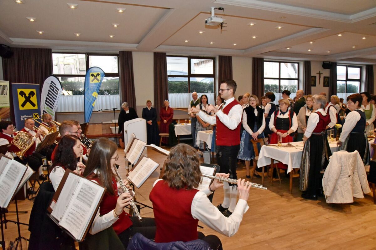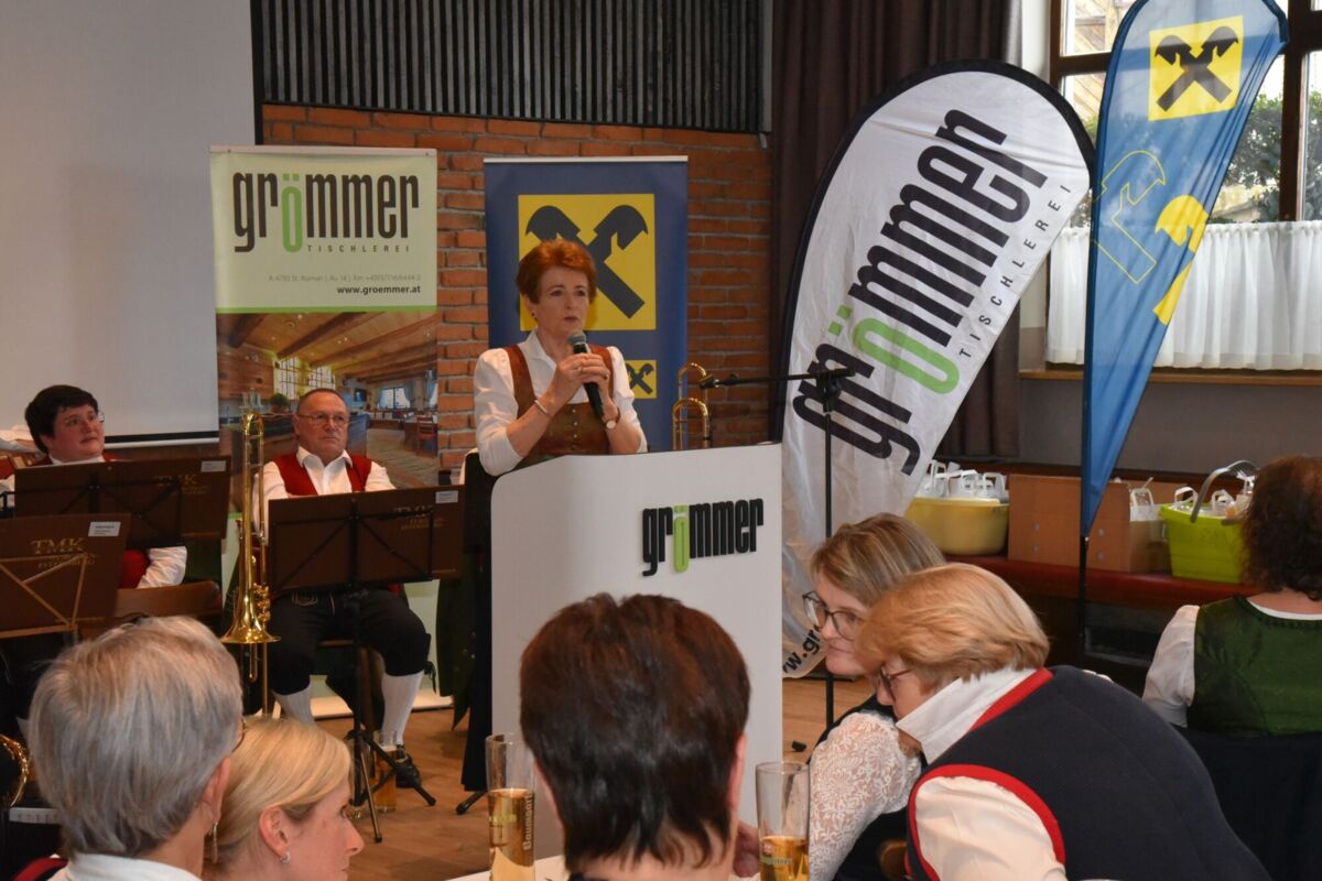 Zahlreiche Goldhaubenfrauen und Ehrengäste folgten der Einladung und erlebten einen festlichen Nachmittag im Zeichen von Brauchtum, Gemeinschaft und Dankbarkeit. Nach dem Eintreffen bei Kaffee und Kuchen eröffnete Ortsobfrau Christine Grömmer um 13.30 Uhr offiziell die Tagung. Bezirksobfrau Anita Kieslinger blickte in ihrem Bericht auf das vergangene Jahr zurück und gedachte der Verstorbenen. Es folgten der Kassabericht von Kassierin Iris Leitner-Panz sowie Grußworte von Bürgermeister Siegfried Berlinger, Bezirkskurat Pfarrer GR Mag. Walter Miggisch und BH a.D. Dr. Rudolf Greiner, der auch das Programm des Benefizkonzertes 2026 vorstellte. Ein besonderer Moment war der Bericht der Landesobfrau Martina Pühringer, für die es nach 25 Jahren ihre letzte Veranstaltung in dieser Funktion war – sie übergibt die Landesleitung an Christine Huber. Mit persönlichen Erinnerungen, unter anderem an eine Hochzeit in Niederösterreich mit musikalischer Verbindung, sorgte sie für emotionale Akzente.