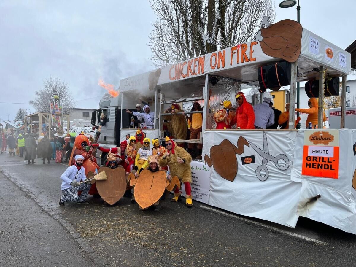 Angeführt vom himmlisch-teuflischen Wagen der Faschingsgilde Narraabia zogen knapp 50 Vereine, bestehend aus Feuerwehren, Landjugenden, Musikvereine, natürlich einige Faschingsgilden und auch Freundesgruppen durch den Ort. Vertreten waren Top Gun, Linhart - Chicken on fire, Wackelkontakt, Fred Feuerstein, Piratenschiff, Woodstock der Blasmusik Hühnerstall, Formel 1, die Minions und viele mehr. „Wir sind stolz, dass sich so viele Faschingsfreunde in Raab zusammengefunden haben, um die fünfte Jahreszeit zu feiern und um die aufwändigen Wägen und Nummern zu bestaunen“, betonen die Gildemitglieder abschließend.