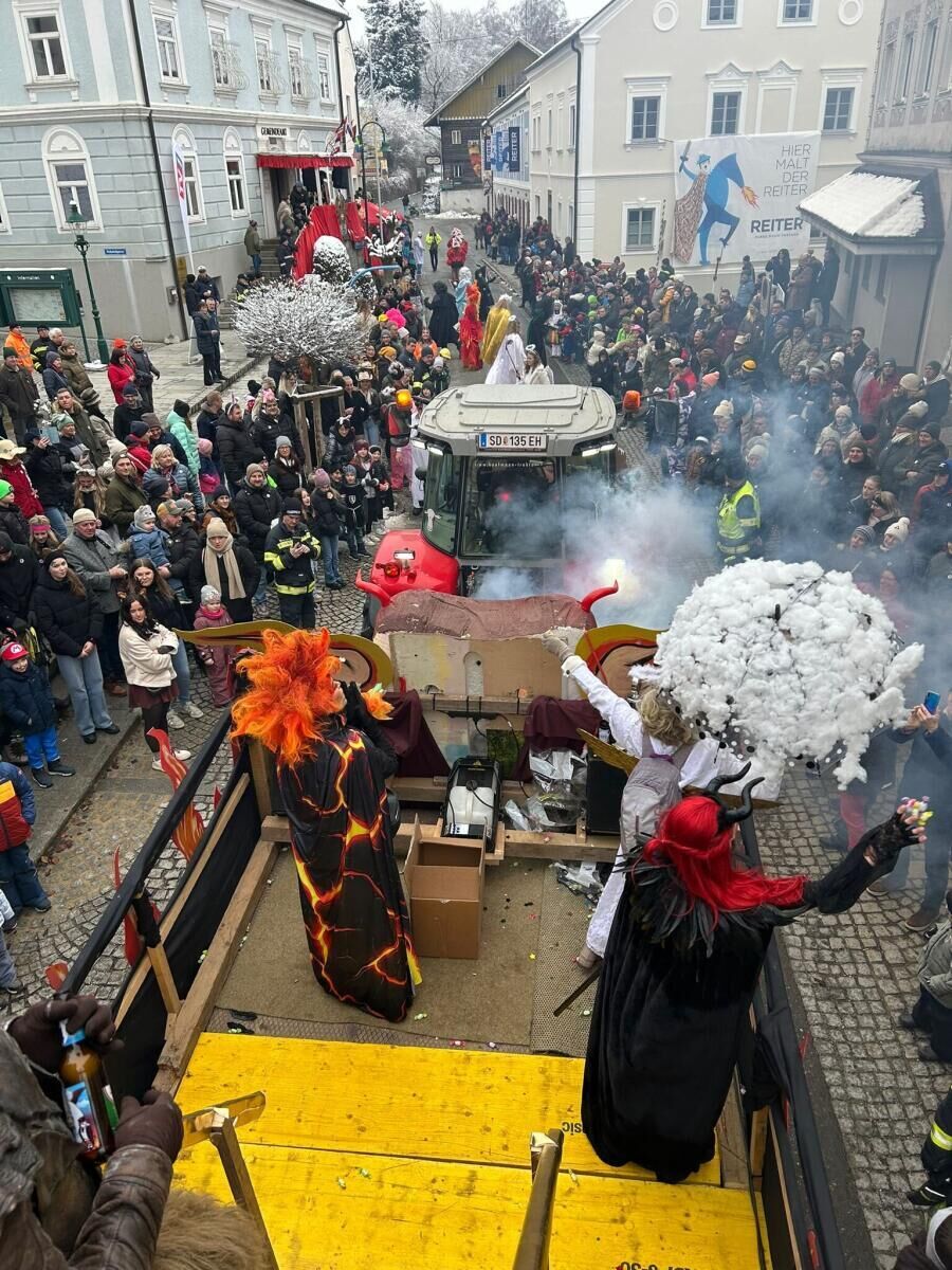 RAAB. Über 4.000 Zuschauer und unzählige Mitwirkende verwandelten den Ortskern Raab in eine bunte, lustige und laute Faschingshochburg.
