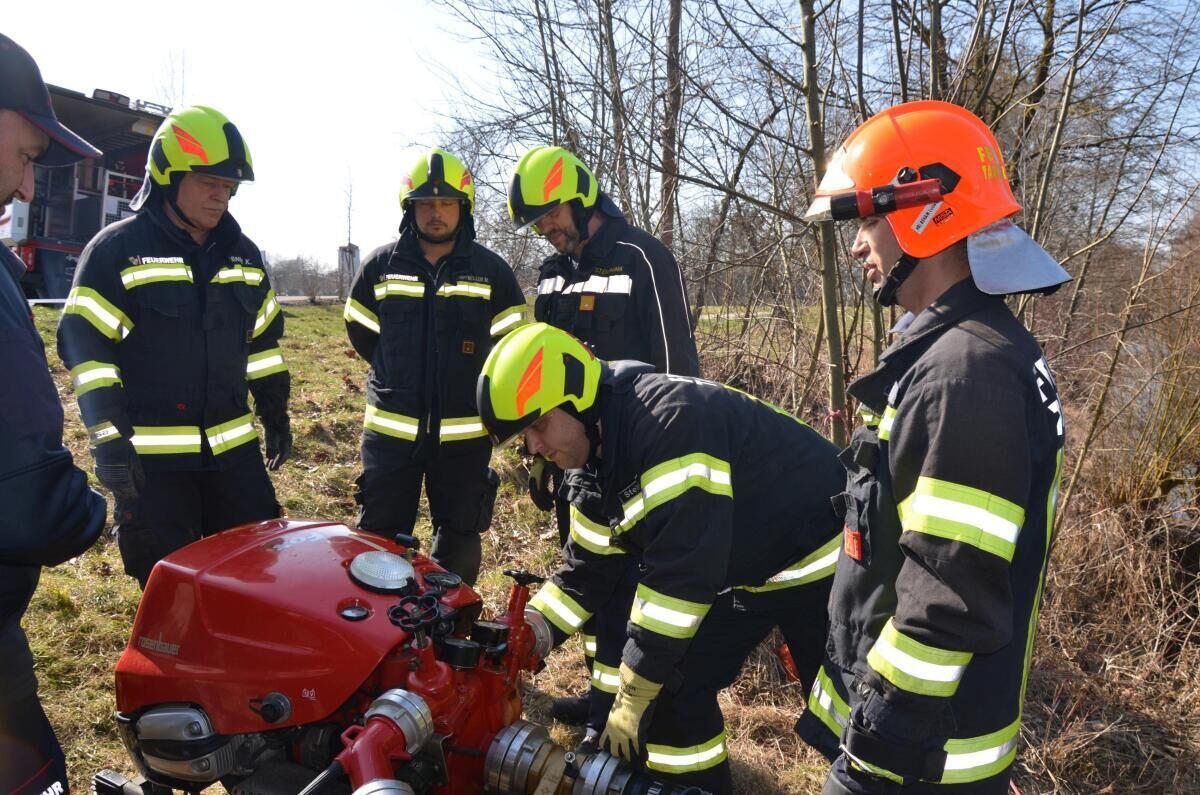 Voraussetzung für die Teilnahme waren grundlegende Maschinisten-Grundkenntnisse. Das Feuerwehrhaus Taufkirchen an der Pram sowie die angrenzende Pram boten ideale Bedingungen für diese Ausbildung.