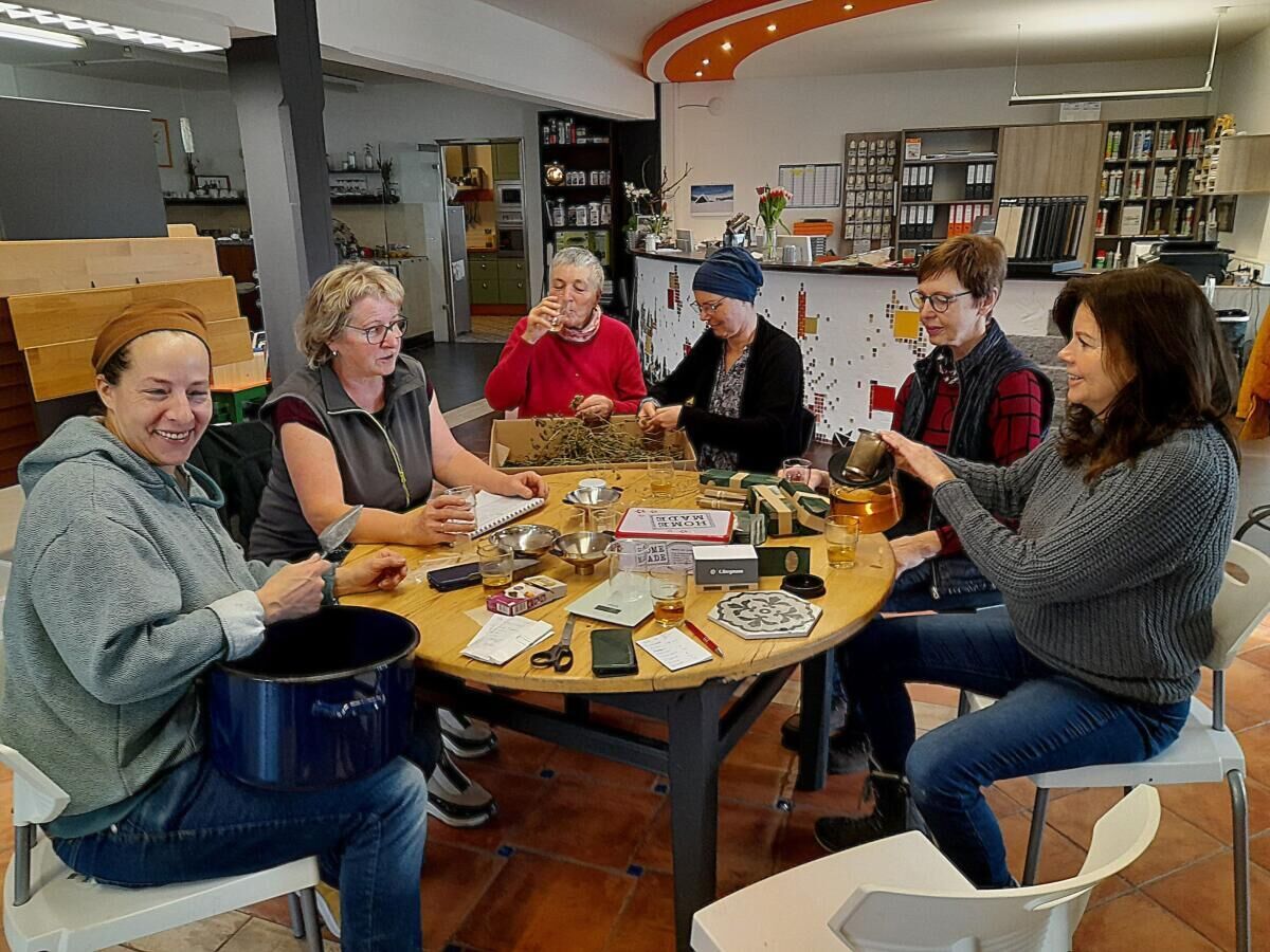 Sechs Damen des Siedlervereins St. Florian trafen sich, um gemeinsam Kräutersäckchen zu binden. Die 13 verschiedenen Kräuter stammen aus dem vereinseigenen Kräutergarten sowie den Gärten der illustren Runde. Die Teemischungen können am Pavillon im Gartenschaugelände, der am Ostermontag, 21. April, festlich eingeweiht wird, gleich verkostet werden.