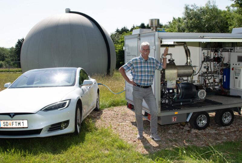 Frauscher hält es für eine dringende energie- und umweltpolitische Notwendigkeit, die Nutzung von Schwach- und Biogasen voranzutreiben. Sein Unternehmen Frauscher Thermal Motors hat 20 Jahre Forschungsarbeit und mehr als 180.000 Arbeitsstunden in die Entwicklung eines neuartigen Stirlingmotors investiert, der das Herzstück des BHKW auf der Deponie Gradinger bildet. Die als Alphagamma bezeichnete Technologie gilt als entscheidender Schritt in der Weiterentwicklung von Stirlingmotoren – das von Frauscher patentierte Verfahren ermöglicht einen langlebigen und schmierölfreien Betrieb bei gleichzeitig hohem Wirkungsgrad (Quelle: Wikipedia). Im mobilen BHKW ist der Stirlingmotor als Einheit mit Asynchrongenerator, Gasbrenner und Verbrennungsluftvorwärmung aufgebaut. Im Unterschied zu Otto- und Diesel-Motoren zündet der Frauscher-Stirling bereits bei einem Methangehalt von 14 Prozent. Bislang konnten derartige Gase nur durch Abfackeln unschädlich gemacht werden. „Anstatt also das Methan nutzlos abzufackeln, wird es in unserem BHKW zu wertvoller elektrischer Energie umgewandelt, die im Deponiebetrieb verwendet werden kann“, erklärt Josef Frauscher.