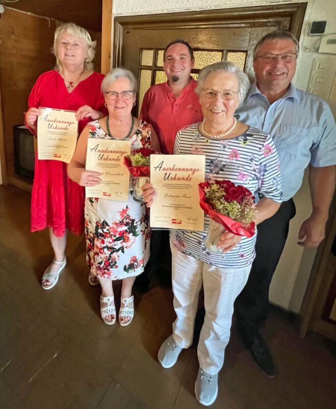 Fixpunkt des Empfangs war die Präsentation des namensgebenden Frauen-Ratgebers „Marie“, der als Nachschlagewerk für Frauen in ganz Oberösterreich Anerkennung findet. „Die Marie ist ein übersichtliches, nach Stichworten geordnetes Nachschlagewerk für Frauen. Neben wertvollen Informationen zu verschiedenen Lebenssituationen erleichtert die Broschüre den Einblick in komplexe Behördenwege. Außerdem finden sich darin Anlaufstellen und Beratungseinrichtungen aus ganz Oberösterreich“, so die Bezirksvorsitzende der SPÖ Frauen, Brigitte Rienesl über den Ratgeber. Ein weiterer Höhepunkt des Empfanges war die Vergabe des Marie-Anerkennungspreises. Damit werden jene Menschen ausgezeichnet, die sich im Bezirk Schärding in besonderer Weise für Frauen in unterschiedlichen Lebenslagen stark machen. Heuer wurden die Pionierinnen der SPÖ Frauen im Bezirk, Johanna Auer, Elfriede Weissenböck und Hilde Müller mit der Anerkennungsurkunde ausgezeichnet. Die Bezirksfrauenvorsitzende Brigitte Rienesl dankte ihnen, im Beisein der Ehrengäste Karl Walch, SPÖ Bezirksparteivorsitzender und Roland Mayrhofer, Bürgermeister in Altschwendt, für ihre besonderen Verdienste.