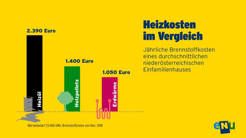 Herbert Greisberger, Geschäftsführer der Energie- und Umweltagentur Niederösterreich ist mit dem Ölheizungsverbot ebenso zufrieden: „Öl ist nicht nur klimaschädlich, sondern auch teuer. Wenn man ein typisches Einfamilienhaus in Niederösterreich mit Öl beheizt, kostet das pro Heizsaison rund 2.390 Euro. Mit einer Pelletsheizung wären das nur 1.400 Euro, mit Erdwärme 1.050 Euro.“