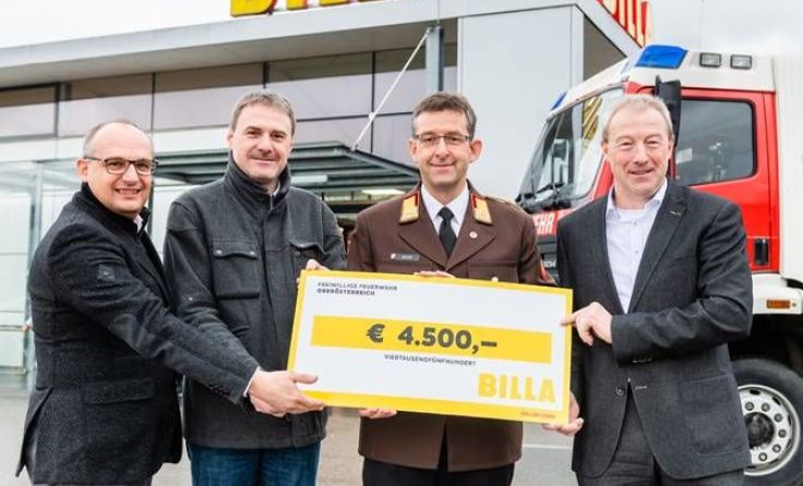 Als kleines „Dankeschön“ überreichte Billa einen Spendenscheck in Höhe von 4.500 Euro an den Landesfeuerwehrverband Oberösterreich in Schwanenstadt. Insgesamt spendete Billa an die Freiwilligen Feuerwehren in Österreich eine Gesamtsumme von 32.000 Euro