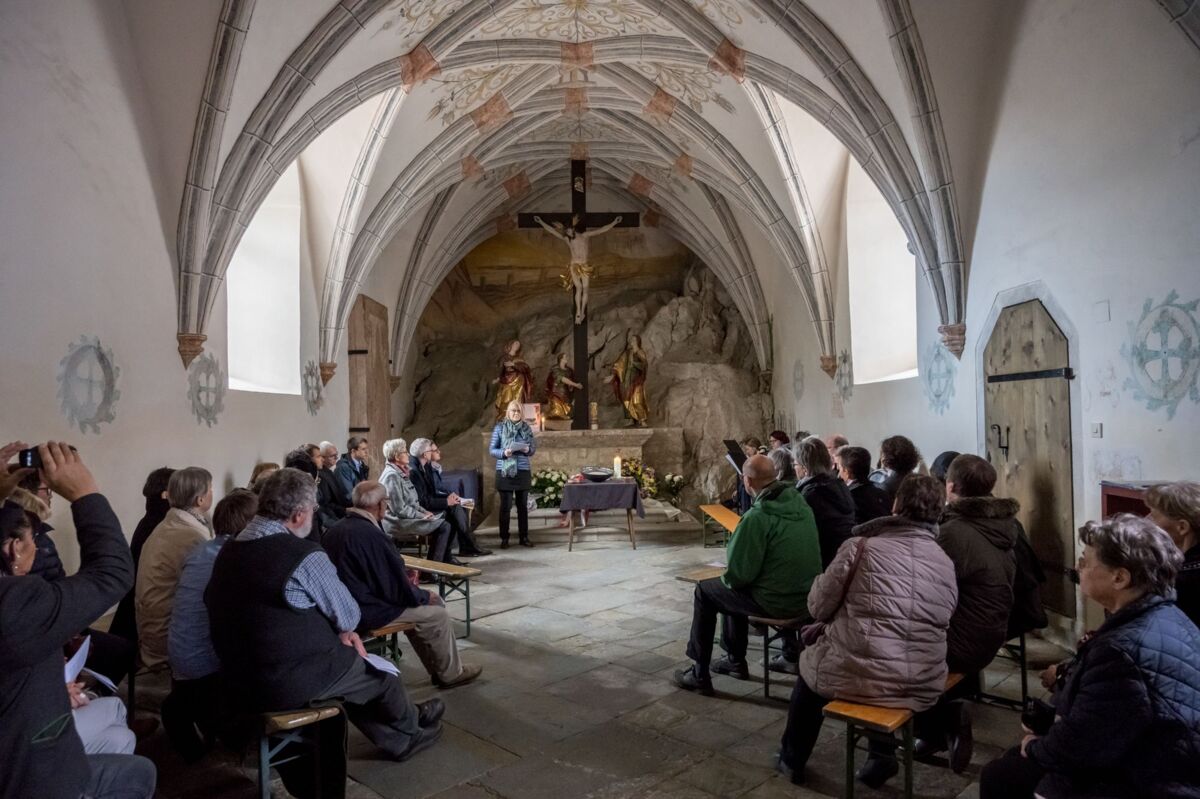 Maria Hasibeder, Präsidentin der Katholischen Aktion in Oberösterreich, hielt eine Gedenkrede, die fünfmal von Jugendlichen unterbrochen wurde. Sie bezeugten, warum ihnen Gedenken heute wichtig sind, und warum sie an der Gedenkfeier teilnehmen.