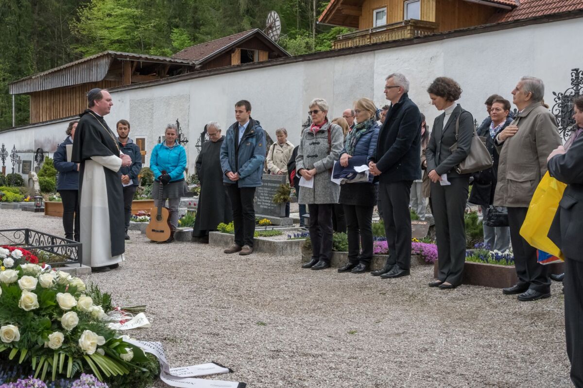 Abschließend wurden die Schale, die Kränze und die Lichter, die die Jugendlichen nach ihren Statements entzündeten, zu den Gedenktafeln am Friedhof getragen, wo Abt Nikolaus Thiel mit einem Segensgebet die Feier beschloss.