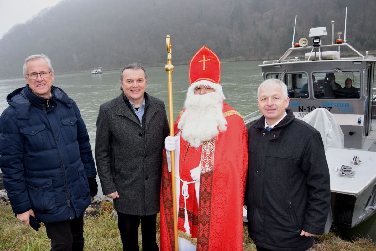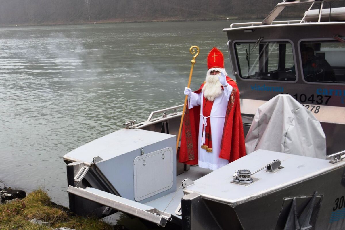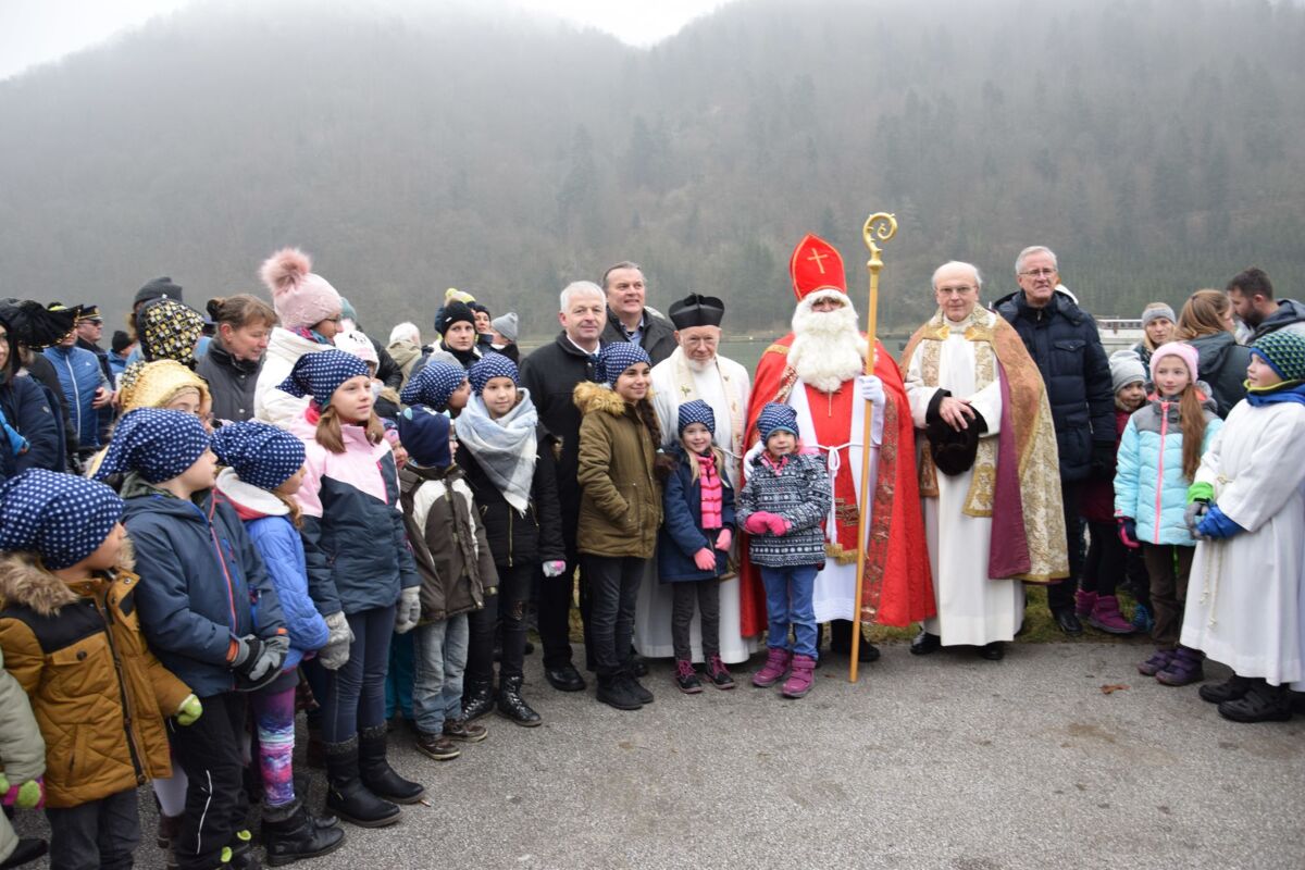 Der Namenspatron der Gemeinde wurde bei Eiseskälte von zahlreichen Kindern und Erwachsenen willkommen geheißen. Bereits zum 46. Mal erwartete die Kinder ein Säckchen mit süßen Überraschungen, Nüssen und Mandarinen. Eltern, Großeltern und Gäste konnten sich beim Punschstand aufwärmen, sich kulinarischer Köstlichkeiten erfreuen und die Handwerkskunst zahlreicher Anbieter bestaunen und erwerben. Seinen Anfang nahm der vorweihnachtliche Empfang des Schutzpatrons der Kinder, der Gemeinde und der Schiffsleute mit einem Festgottesdienst – feierlich umrahmt von der Singgemeinschaft, der Volksschule und dem Kindergarten sowie der Trachtenmusikkapelle St. Nikola.