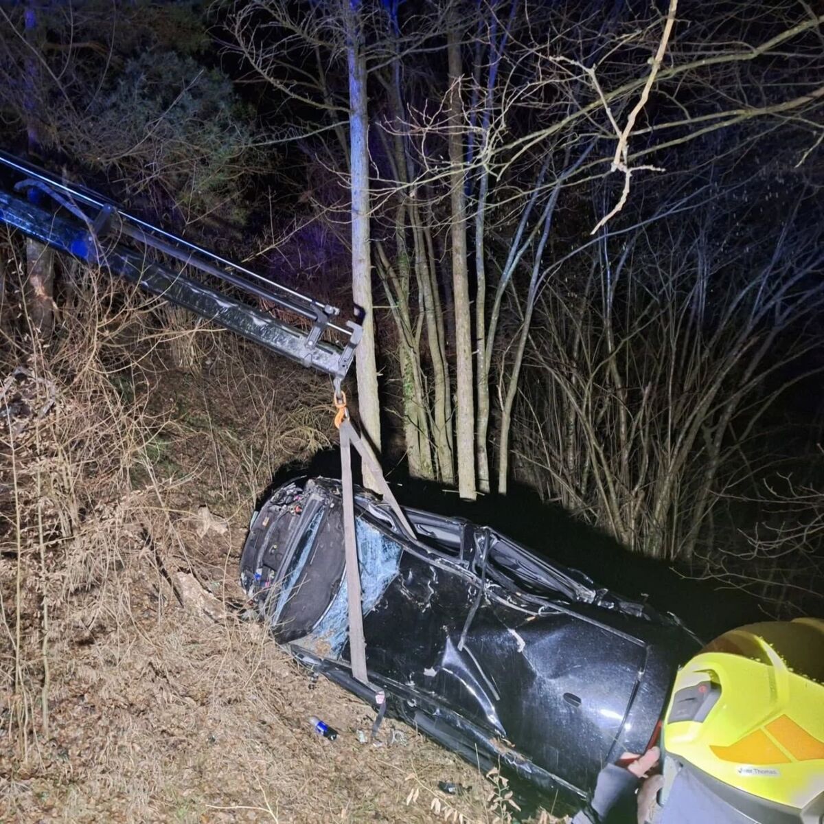 „Das Fahrzeug, das von Steyr in Richtung Ternberg unterwegs war, kam in einer Kurve von der Fahrbahn ab und stürzte in den darunterliegenden Wald. Aufgrund der schwierigen Lage des Fahrzeugs gestaltete sich die Bergung besonders herausfordernd. Gemeinsam mit einem Abschleppdienst gelang es den Einsatzkräften, das Fahrzeug wieder auf die Straße zu heben und abzutransportieren. Glücklicherweise konnten sich die Insassen selbst befreien und wurden vor Ort vom Roten Kreuz medizinisch betreut“, berichtet die Freiwillige Feuerwehr Sand.