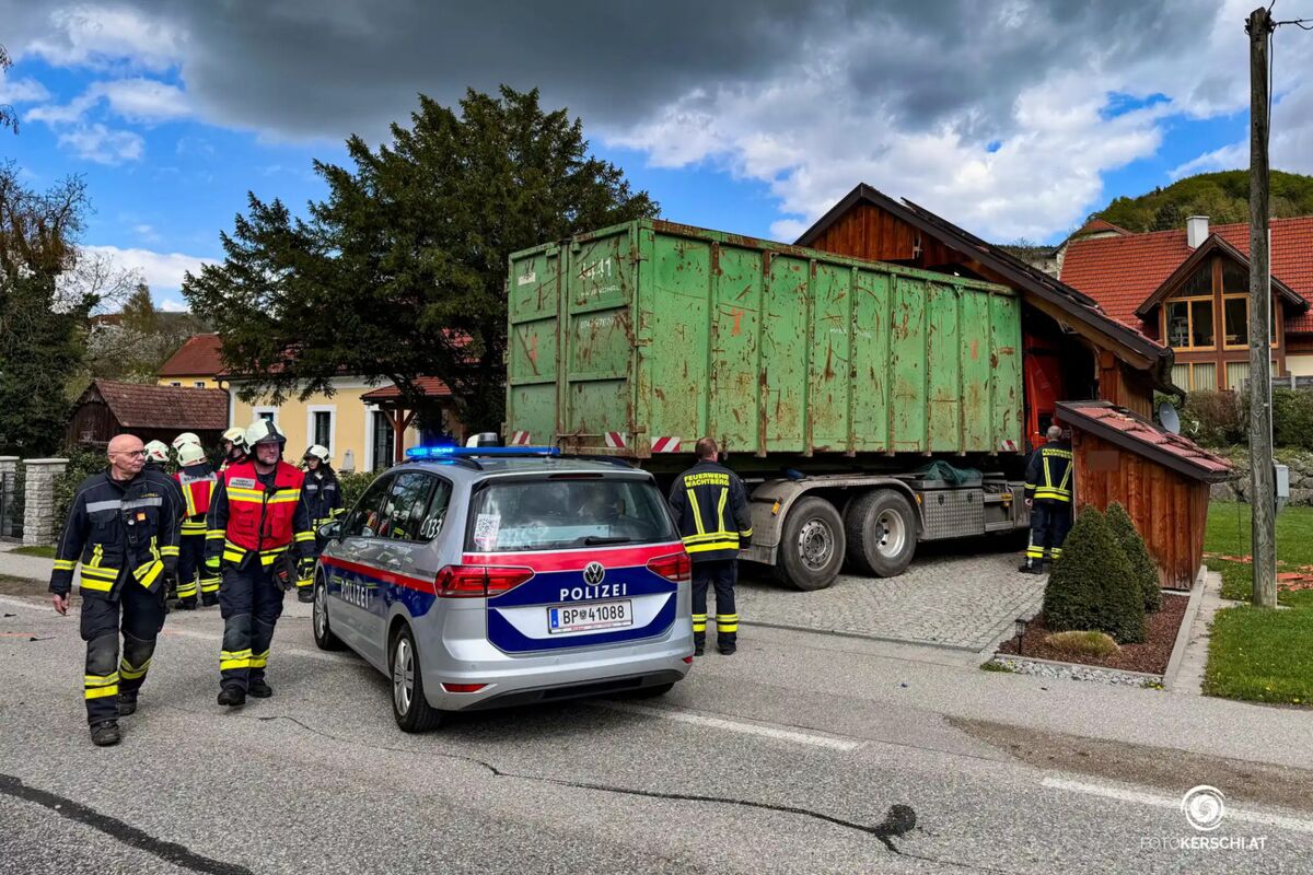 Das Fahrzeug durchbrach eine Zufahrt und kam erst in einer angrenzenden Garage zum Stillstand, die dabei erheblich beschädigt wurde.