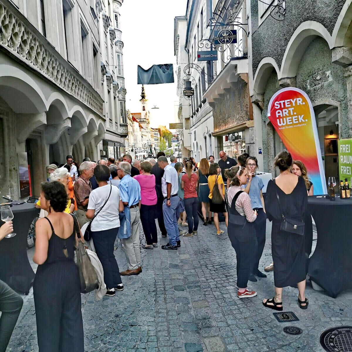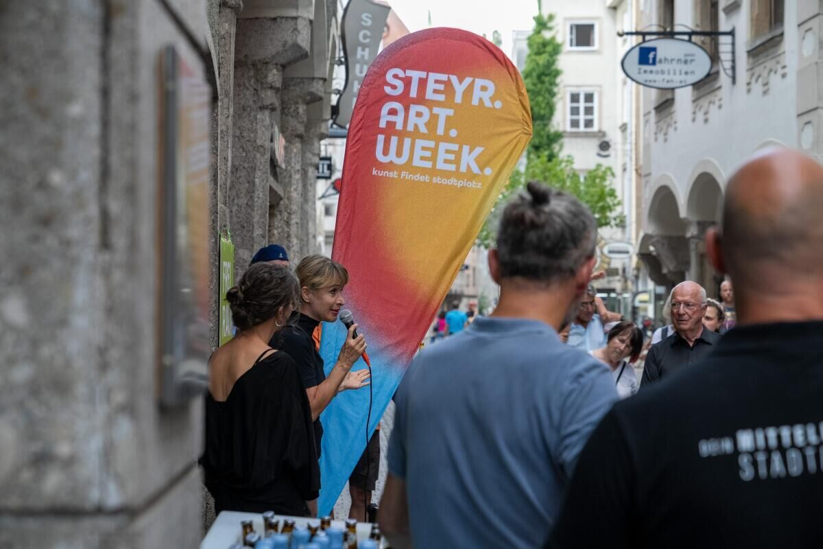 Kurator Franky Kühberger erklärt die Anfangsidee der Steyr.Art.Week.: „Steyr braucht den Stadtplatz, so wie der Stadtplatz die Steyrer – wir brauchen Kommunikation, wir brauchen Geschäfte, wir brauchen die Menschen. Kunst kann dies alles verbinden.“