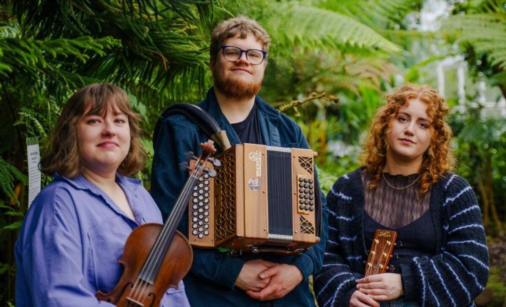 Auch Sam Mabbett erobert die Akku-Bühne und spielt mit der Gitarristin Heather Cartwright und der Geigerin Madeleine Stewart erstklassige keltische Weltmusik. Karten: Tel. 0664 73115620