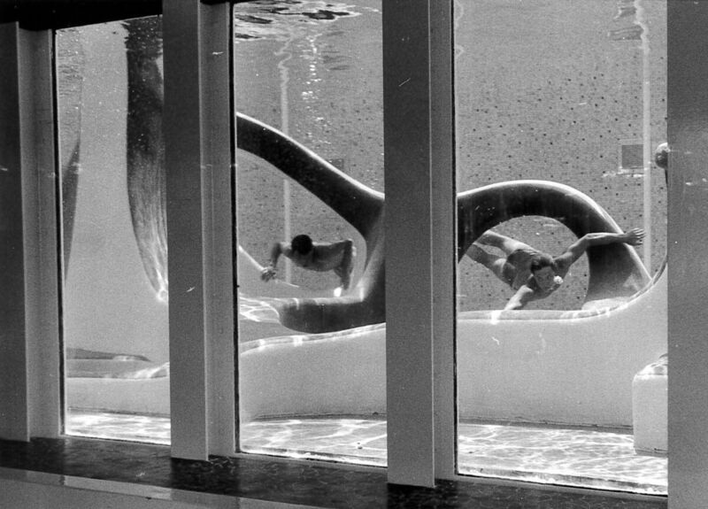 Der Tauchergarten im Stadtbad ist einzigartig in Österreich und steht unter Denkmalschutz. Zentrales Gestaltungselement ist eine Betonplastik mit integrierter Rutsche. Die Plastik hat ovale Öffnungen, die man durchtauchen kann. Das Becken ist an zwei Seiten mit großen Glaswänden ausgestattet.