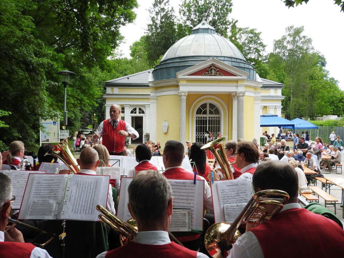 Nach der Aktivierung des Jodbrunnes war ein Frühschoppen mit der Musikkapelle Pfarrkirchen angesagt, am Nachmittag gab es eine Lesung von Autorin Dagmar Fetz-Lugmayr aus ihrem Buch „Sagenreiches Bad Hall“ umrahmt von der Almtaler Bordun-Musik.
