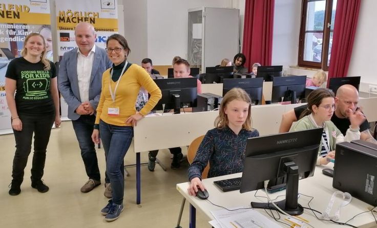 „Ich bin beeindruckt, dass so viele Kinder sich freiwillig am Freitagnachmittag in die Schule setzen und programmieren. Das zeigt, dass es hier ein großes Interesse und den Bedarf für dieses Angebot gibt“, sagt BRG Steyr-Direktor Gerald Bachmayr.
