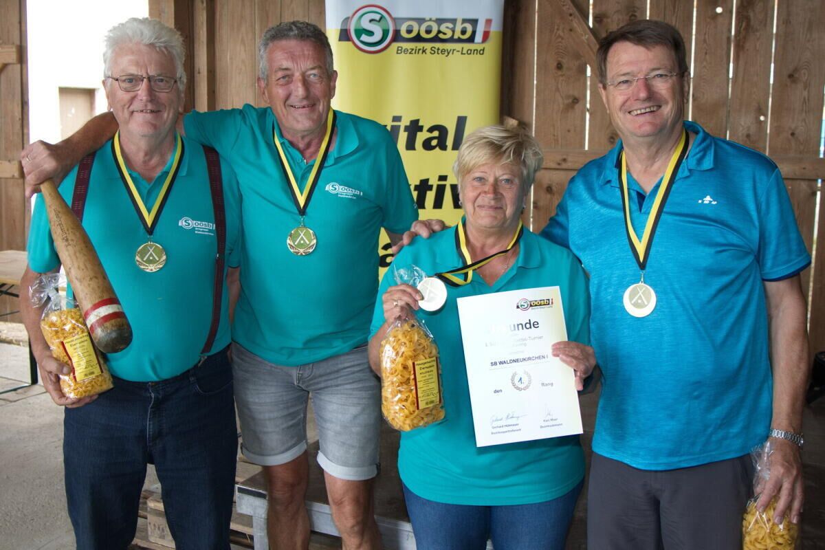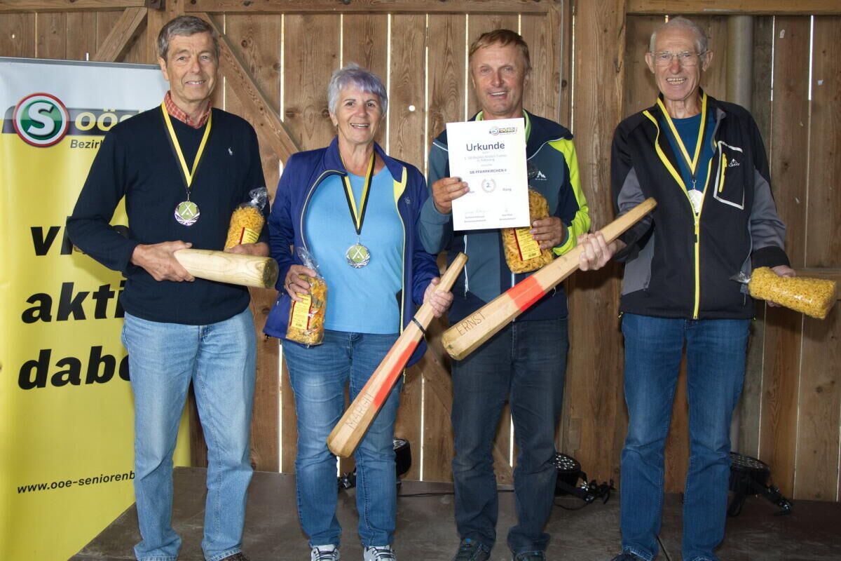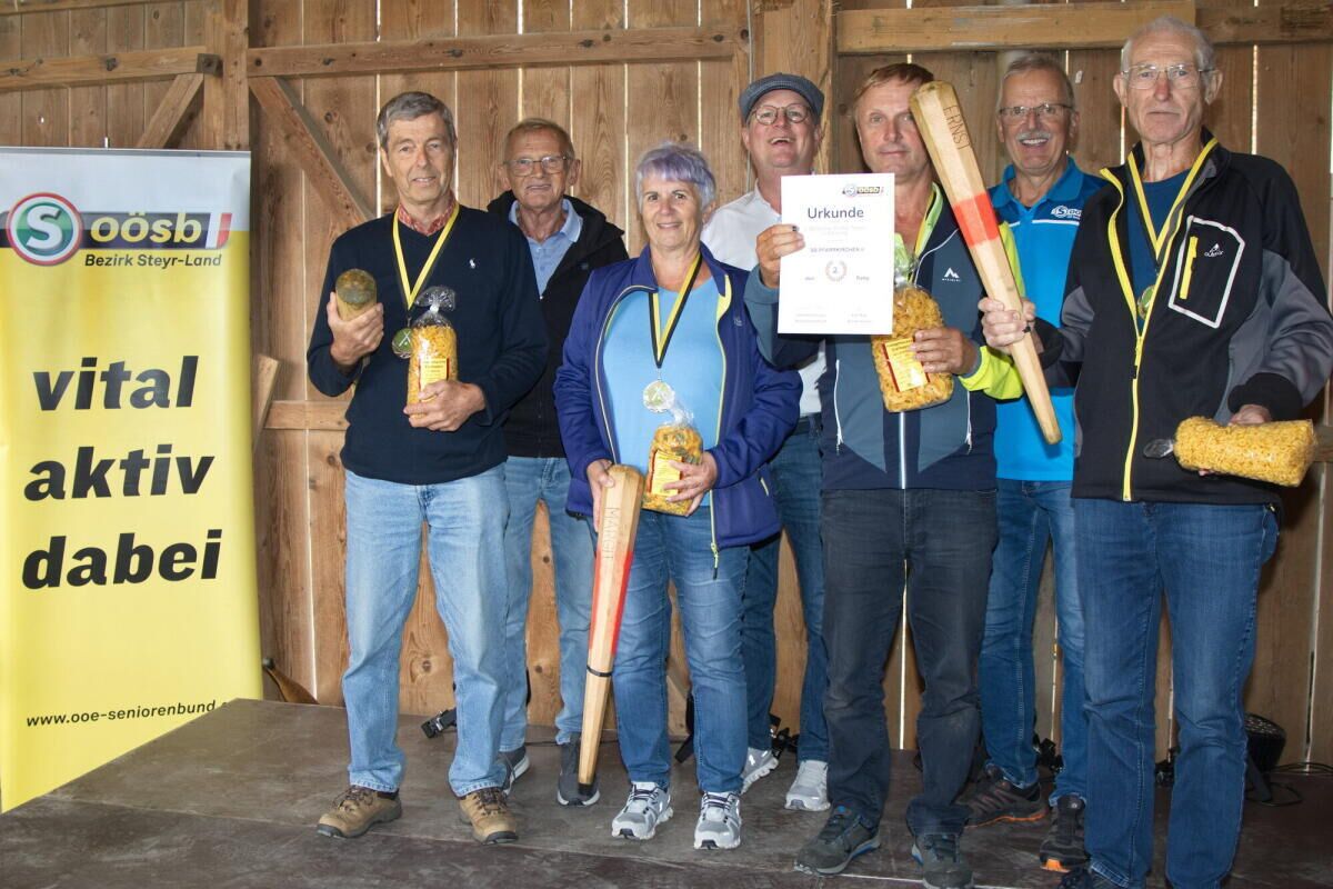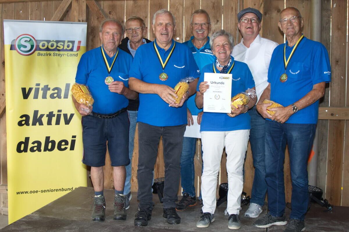 Neben den Gold-, Silber- und Bronzemedaillen erhielten die drei erstplatzierten Teams die Fahrkarten für das Seniorenbund-Landes-Knittelturnier am 26. September in Gramastetten (Bezirk Urfahr-Umgebung).