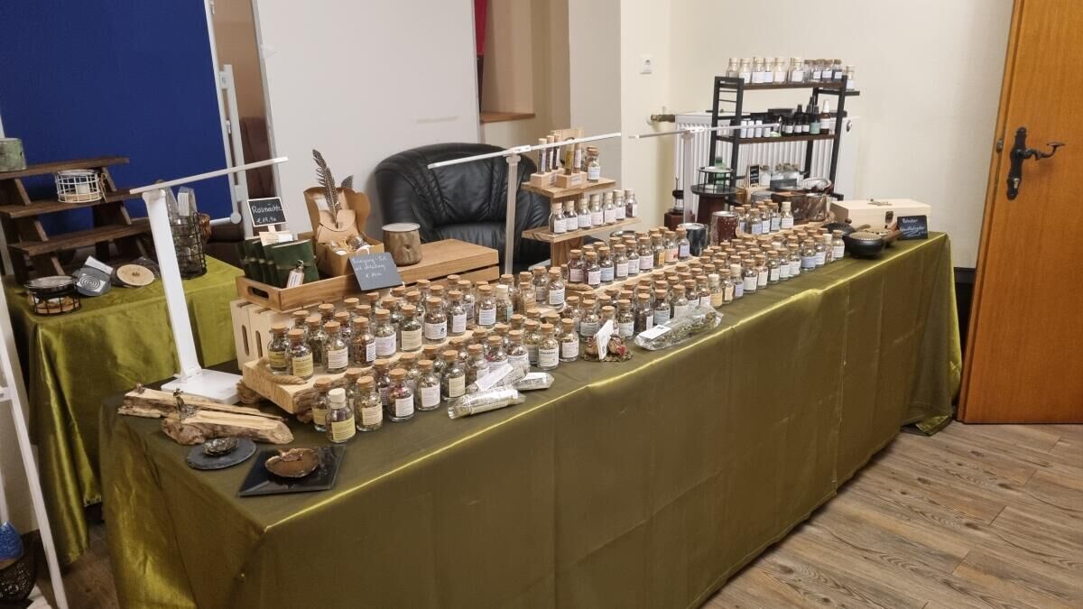 Keramikfiguren, Korbwaren, alles rund um Wolle und Textiles, Holz, Metall und Stein von Hand in Form gebracht, Räucherwerk, natürliche Raumdüfte und Pflege, Honigprodukte, Schmückendes für Hand und Ohr und vieles mehr.