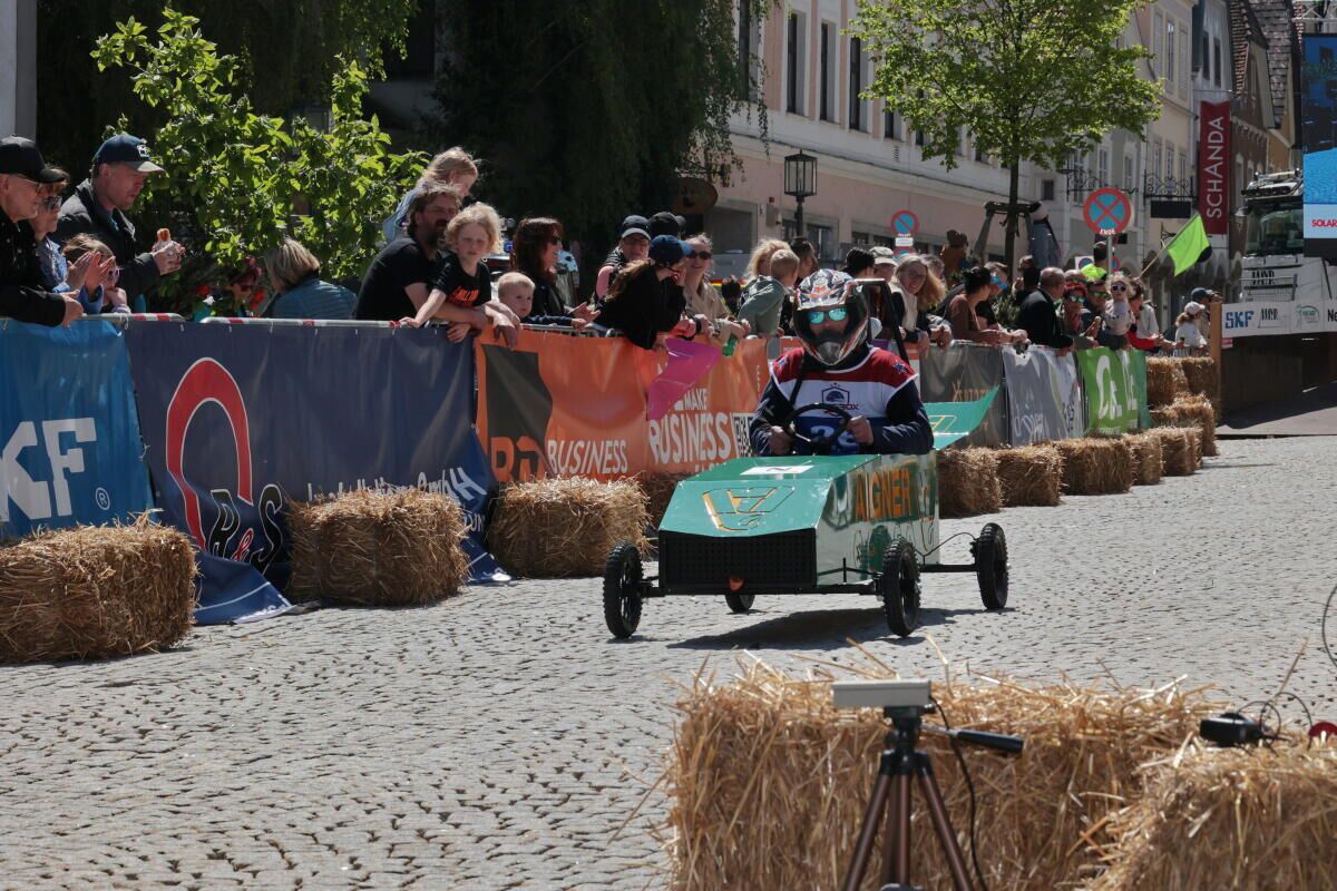 Hier gilt es möglichst viel Schwung mitzunehmen für das letzte Stück am Stadtplatz, das Ziel befindet sich beim Bummerlhaus. Es gibt zwei Durchgänge, wobei der schnellste in die Wertung geht.